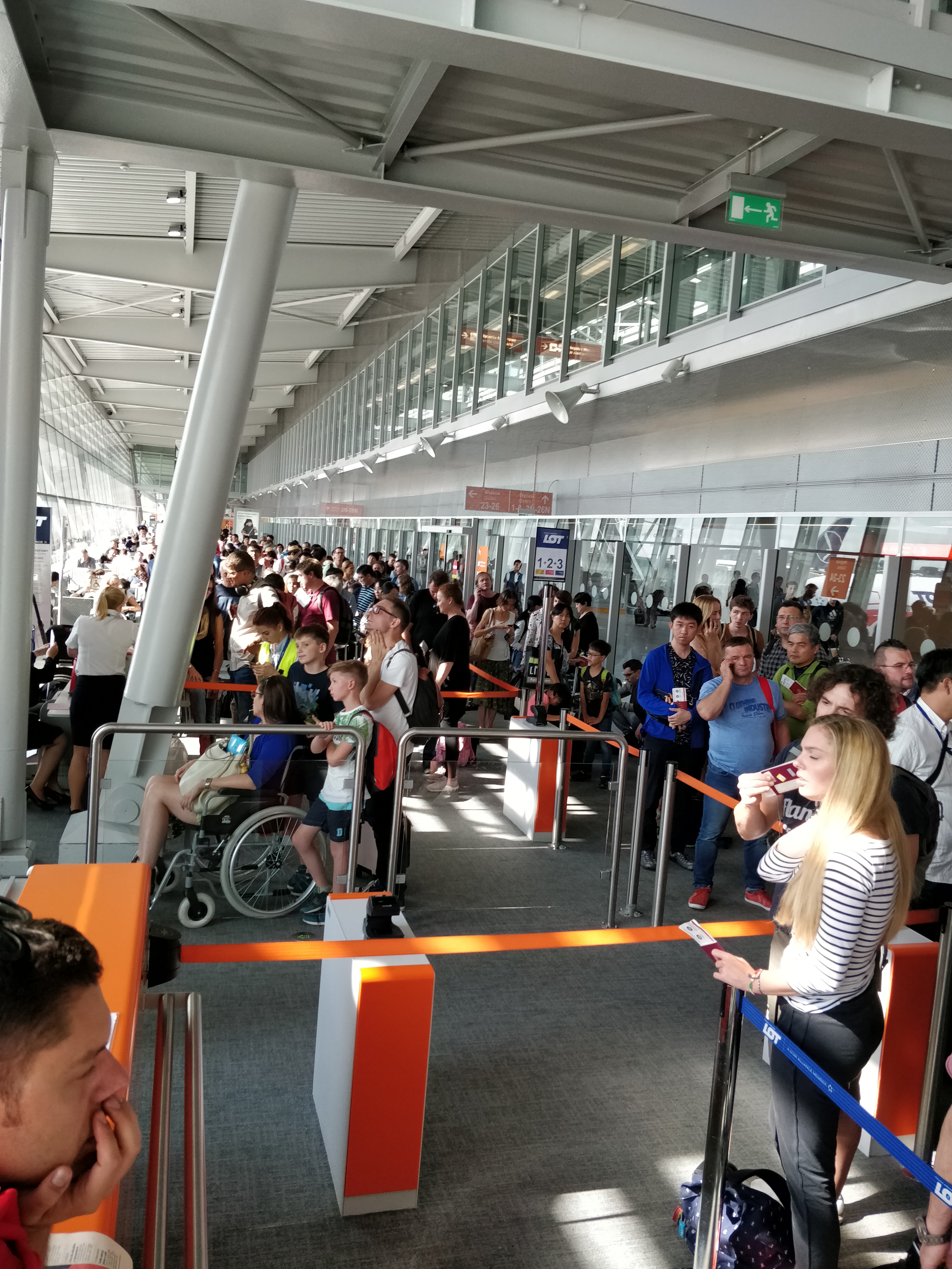 Der Warschauer Flughafen ist wirklich nicht groß, und so hat unsere spontane zusammengefundene Traube aus fünf Reisenden das Gate schnell gefunden. Wie der Zufall es so will, saßen wir fünf Japan-Orientierten alle nebeneinander. Ein 18jähriger Abiturient sowie ein Ehepaar (mit Bruder der Frau, soweit ich das richtig verstanden habe) sorgten so für interessante Gespräche (und lustige Fahrten in blauen Koffertrollies!). Das Ganze verlief sich wieder, als jeder Mal durch den Flughafen schlenderte. Aber hey, die Welt (und so ein Flugzeug) ist klein, eventuell sieht man sich ja doch irgendwo wieder… 😉