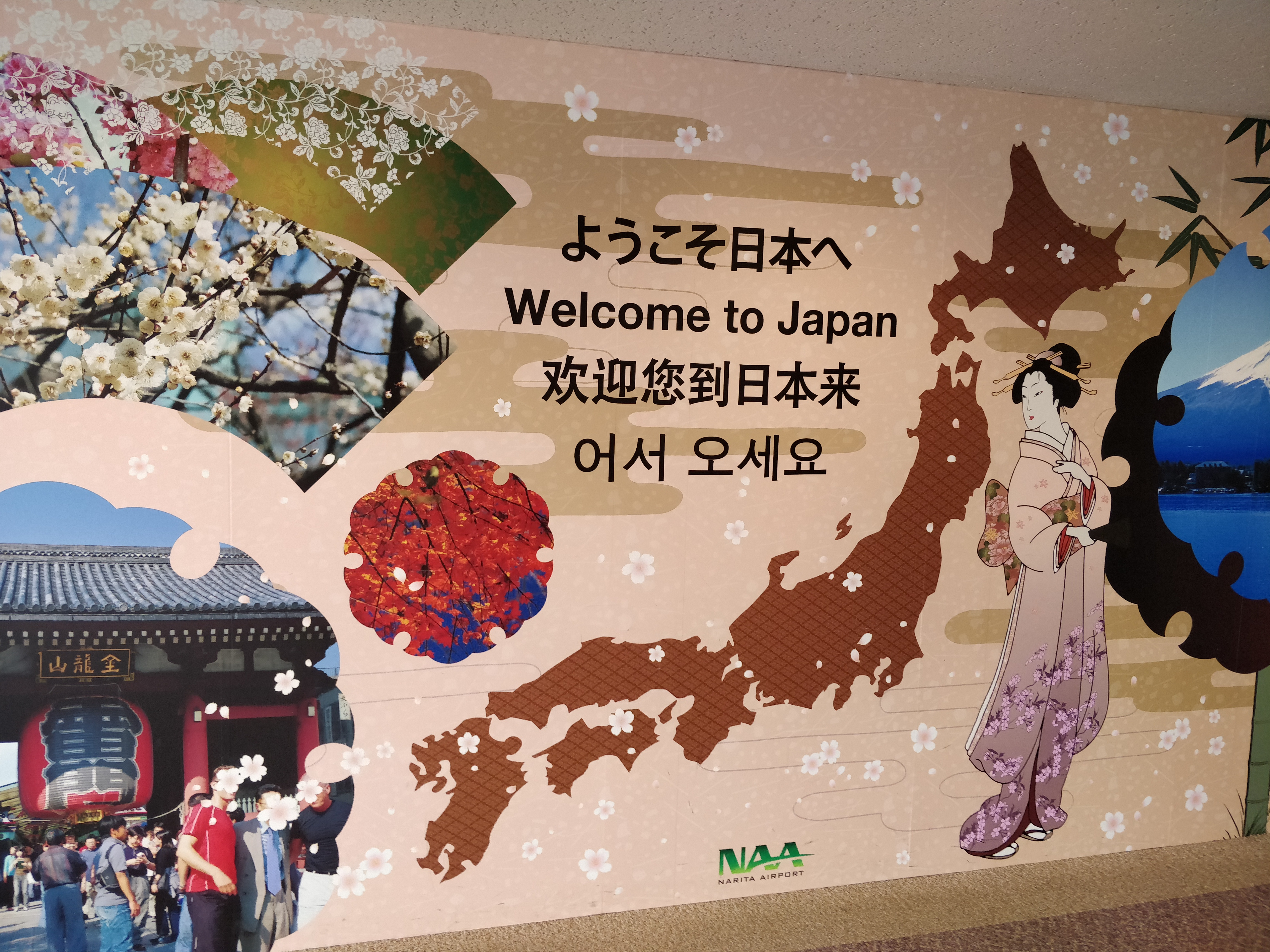 Nach der Einreise ins Land ging es erst einmal auf die Suche nach dem Post Office am Flughafen, wo ich meinen WiFi Hotspot entgegen nehmen konnte. Mit einer anschließenden Zugfahrt zum Bahnhof Narita (¥240, Abfahrt 10:59, ~7min) war Alles bereit, um von dem Team von JapanCampers abgeholt zu werden (¥100 für Infoanruf, Ankunft 11:39). Während der ganzen Reise versuchte ich, ein paar Bilder in die sozialen Medien zu streuen, was in Deutschland sehr gut ging, in Warschau eine Katastrophe war (sowohl Mobile als auch Flughafen-WiFi) und in Narita so-lala geling (Flughafen-WiFi).
