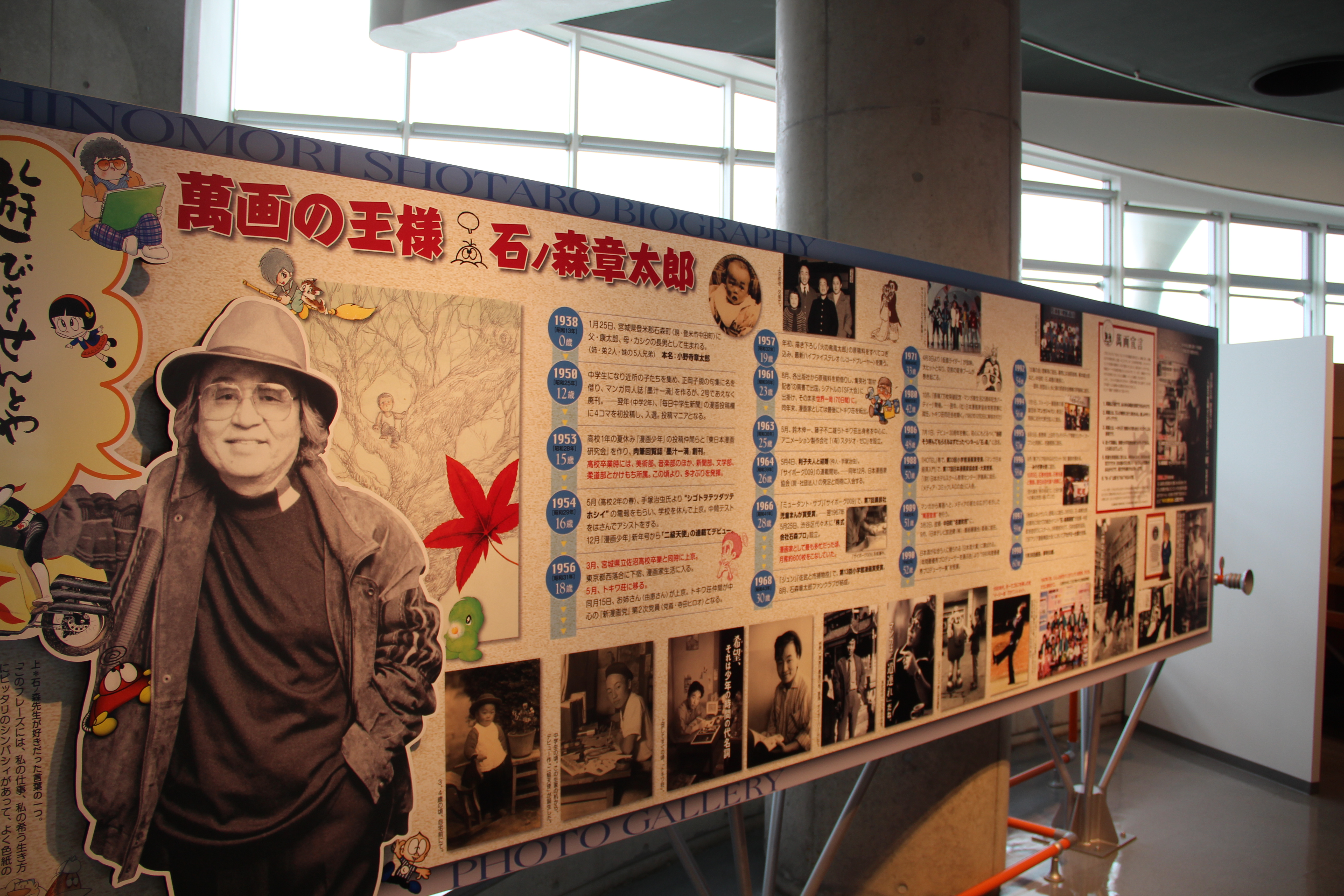 Für die Stadt Ishinomaki hatte ich mir im Vorfeld bereits einen Bereich mit vielen Parkplätzen ausgesucht, um von dort in Richtung Park schlendern zu können. Direkt nebenan, einmal über den Fluss, stellte ich dann fest, dass es noch einen Ort gab der mich mehr interessierte: das Ishinomori Manga Museum. Um JPY800 für den Eintritt leichter begann ich also die drei Etagen abzulaufen. Im Museum ausgestellt sind sehr sehr alte Serien und Figuren, die uns im Westen kaum etwas sagen. Die meisten kenne ich auch nur namentlich, da ich mich mit der Entstehung von Manga beschäftigt habe. Der meistvertretene Künstler war natürlich Ishinomori-sensei, der in Ishinomaki aufgewachsen ist. (Irgendwann tauchte auch Mal noch Detektiv Conan auf – der Zusammenhang ist mir jedoch unklar.) Kamen Rider ist sicher eine seiner auch jetzt noch bekanntesten Figuren.