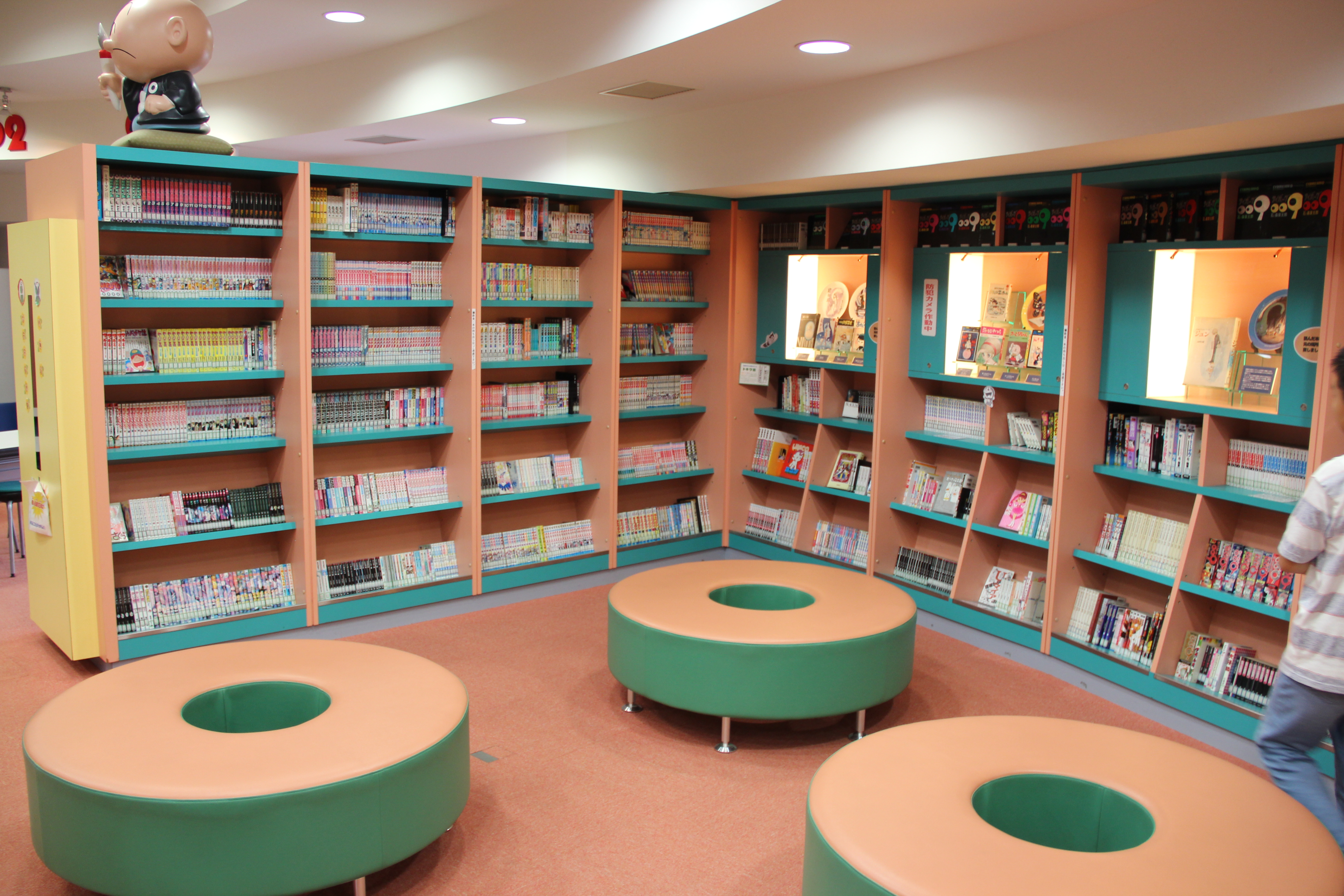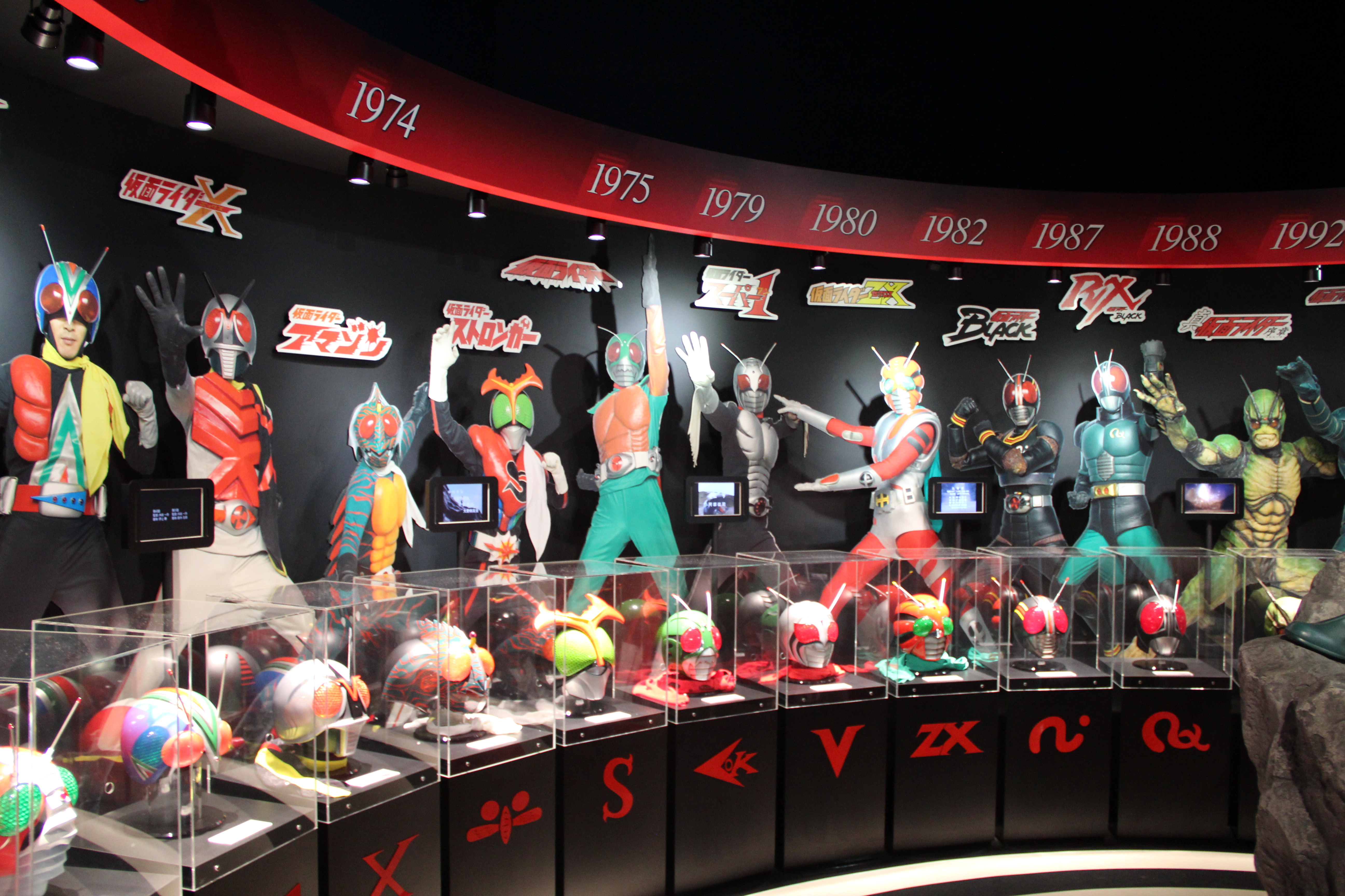 Über die anderen Serien und Ausstellungsstücke kann ich ohne zusätzliche Recherche leider gar nichts sagen. Alle Infotafeln, Videos, Bildunterschriften und co. waren alle rein auf Japanisch verfasst. Ein englisches Leaflet gab es am Eingang zwar, doch deckt dieses natürlich lange nicht die Informationsgewalt dessen ab, was man eventuell mitnehmen hätte können. Ganz grundlegend beschreiben kann ich es jedoch: die erste Etage enthielt Informationen zu Ishinomori-Sensei und seinem Leben. Auf der Spirale zur nächsten Etage gab es noch eine Analyse des Manga-Aufbaus, seiner Komponenten, und vermutlich auch dem Spannungs- bzw. Handlungsaufbau. Die zweite Etage selbst war auf einer Seite quietschend Pink für Hello Kitty und seine Freunde (da gab es mehr davon? Wer hätte das gedacht), die andere Hälfte wurde soweit ich verstanden habe den bekanntesten Serien Ishinomoris gewidmet. Der Aufstieg zur letzten Etage öffnete einem den Zugang zum internen „Kino“ von etwa zehnminütigen Kurzfilmen – ich bin effektiv nie in eins rein gekommen, weil ich immer zur falschen Zeit davor stand. Die letzte Ebene war dann ein Spiel-, Spaß- und Entspannungswunderland. Während die einen sich am digitalen Zeichnen und erstellen von Manga ausprobieren konnten, gab es zudem eine große Bibliothek mit unzähligen (laut Leaflet 160.000) teilweise sehr alten Manga. Der Aufbau dieser Leseecke hat mir sehr gefallen – sollte ich je den Platz haben… Mmmmh 😉
