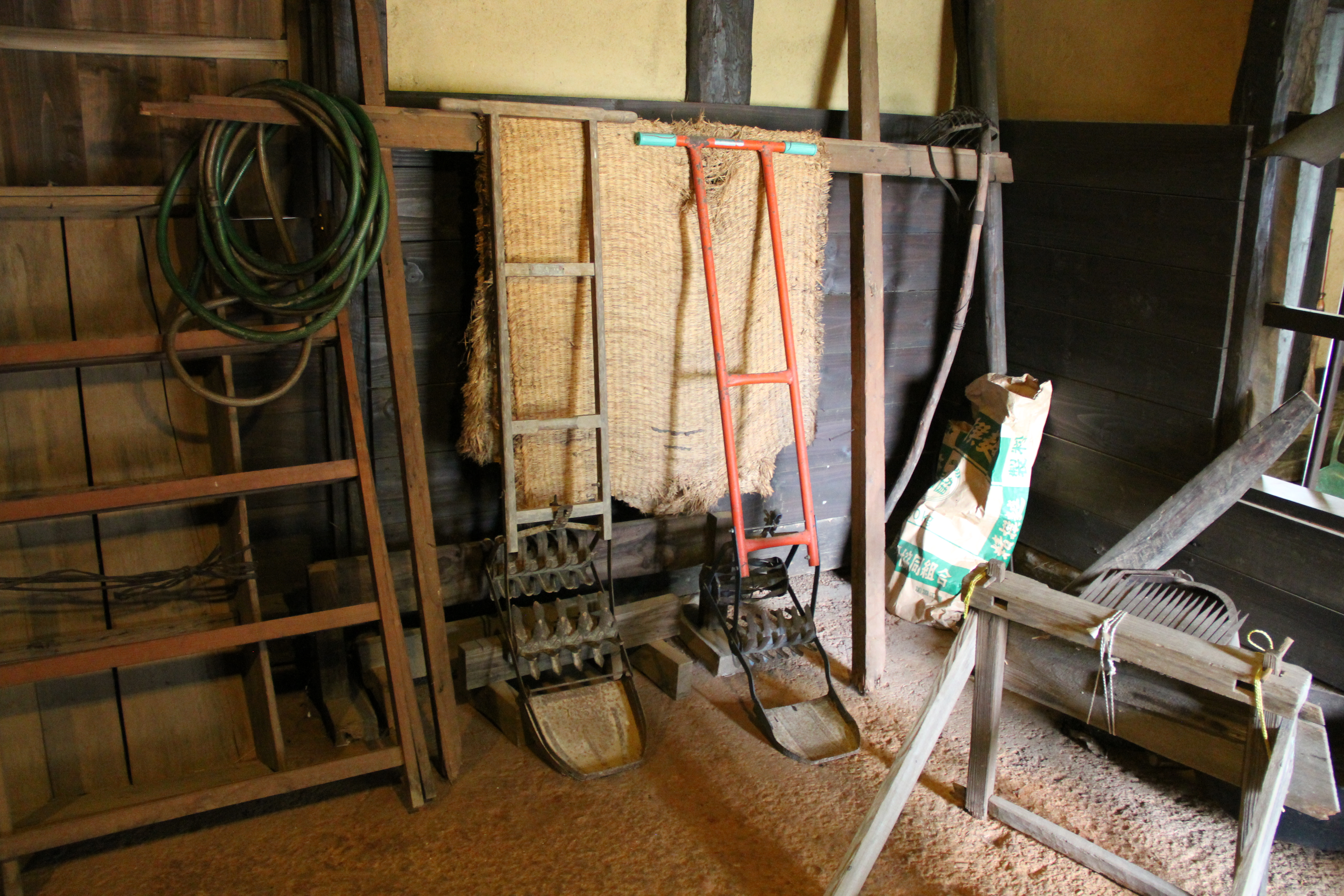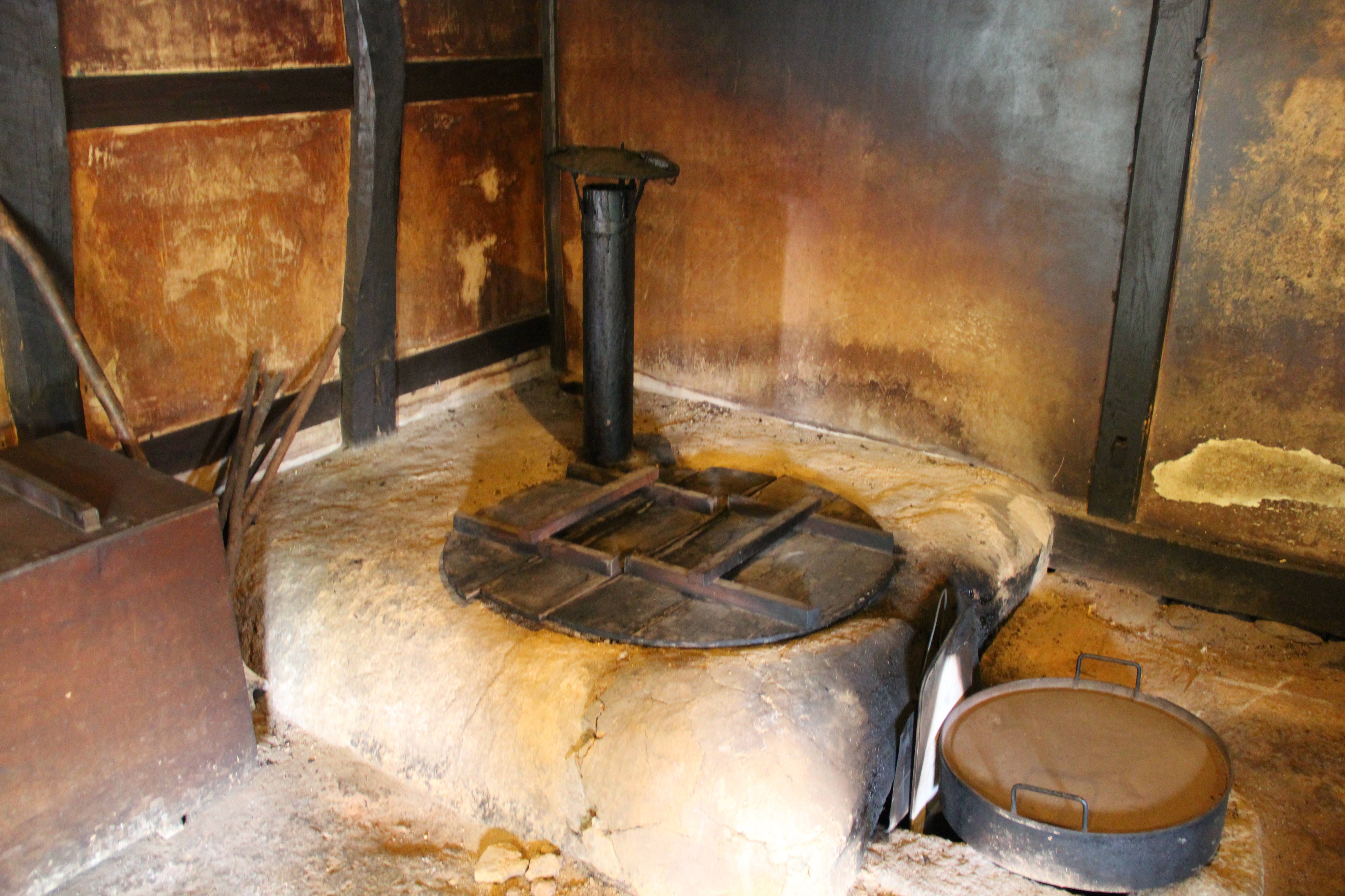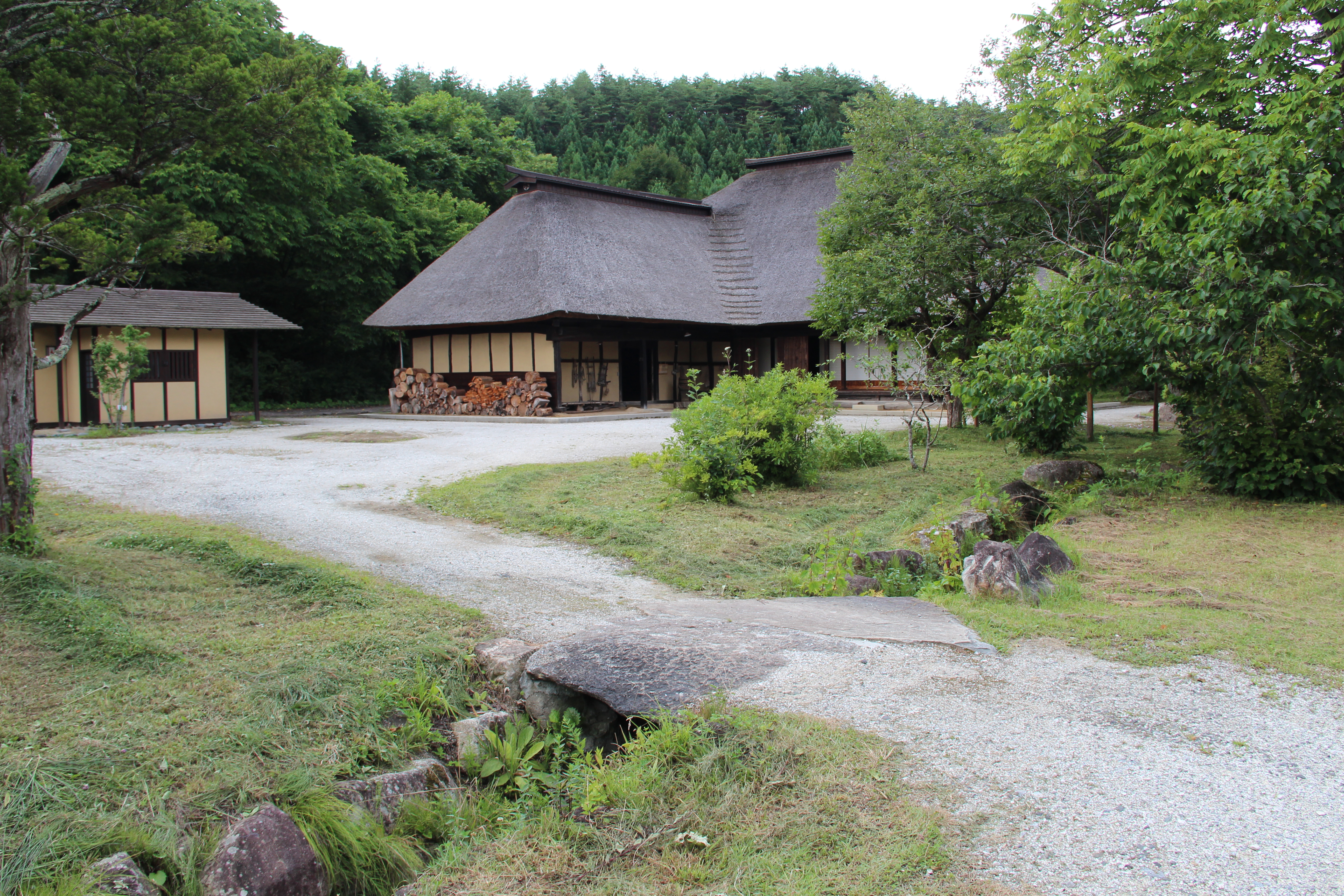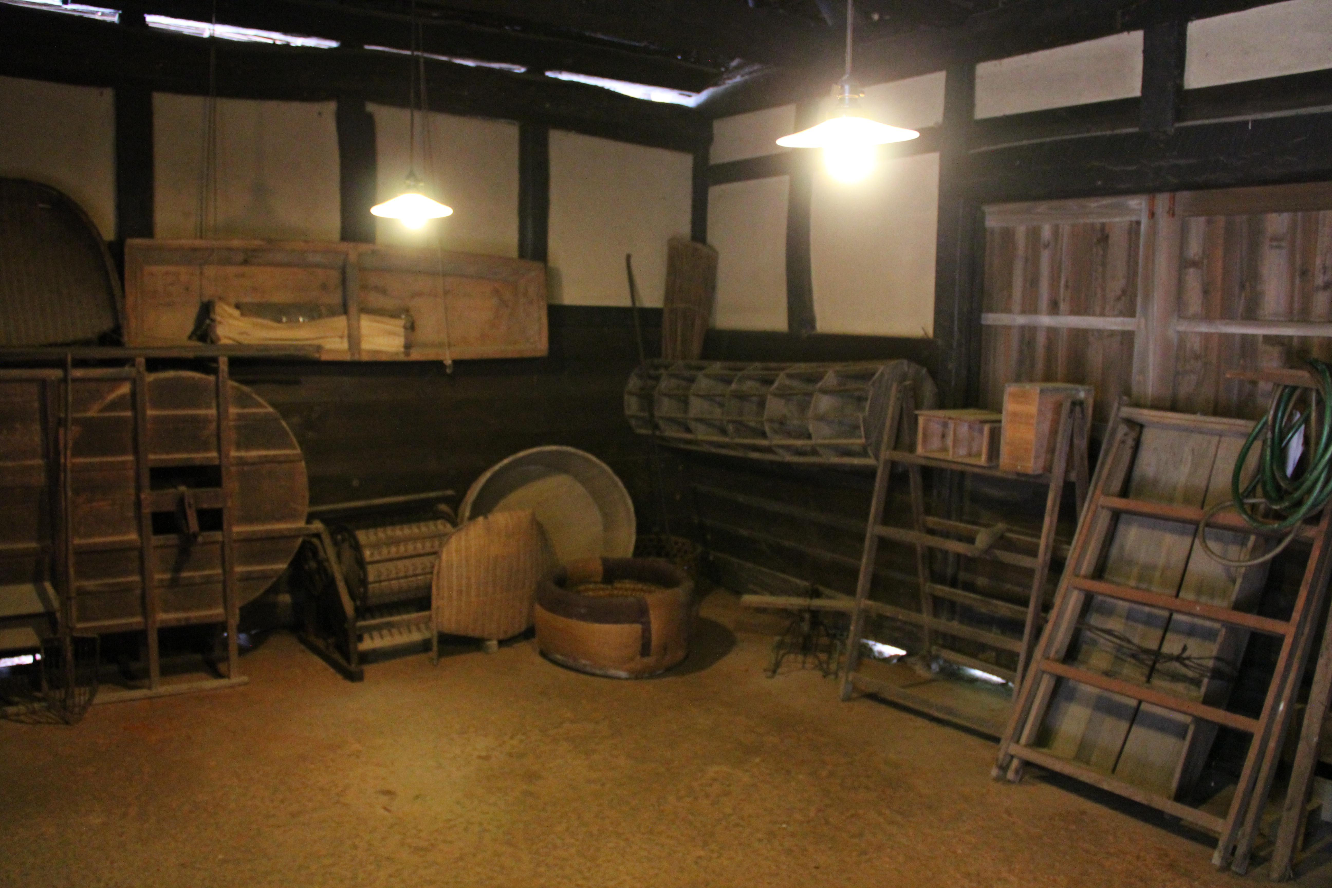 Die erste Station des Tages war netterweise in direkter Lauf-Nähe der Raststätte. Der Weg führte an einem kleinen Schrein (natürlich) sowie einem Fluss entlang. Das Haus selbst war sehr schön anzusehen (noch war ich allein), jedoch war es auch nur etwa ein Drittel so groß wie zum Beispiel der Gegenpart vor ein paar Tagen. Im Inneren gab es wieder eine Feuerstelle (diesmal klugerweise nicht mitten im Raum, sondern so, dass man vom Schuh-Bereich aus an die Feuerstelle heran kam!), und die Räume waren mit historischen Geräten, einem eigenen Brunnen, Fässern und Holz vollgestellt. Beim Rückweg kam mir dann noch eine Gruppe Schüler entgegen – gut, dass ich in Ruhe alles genießen konnte!