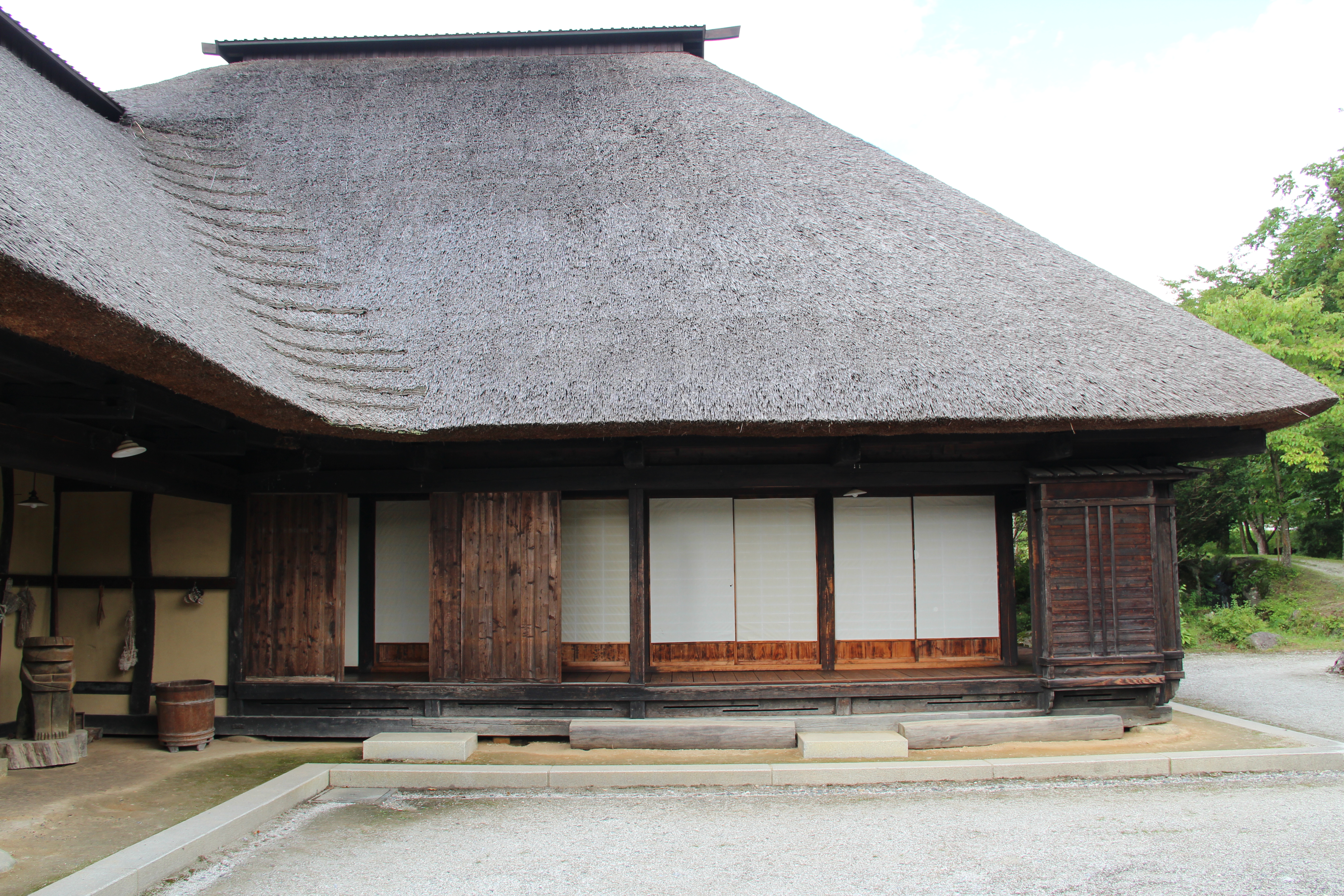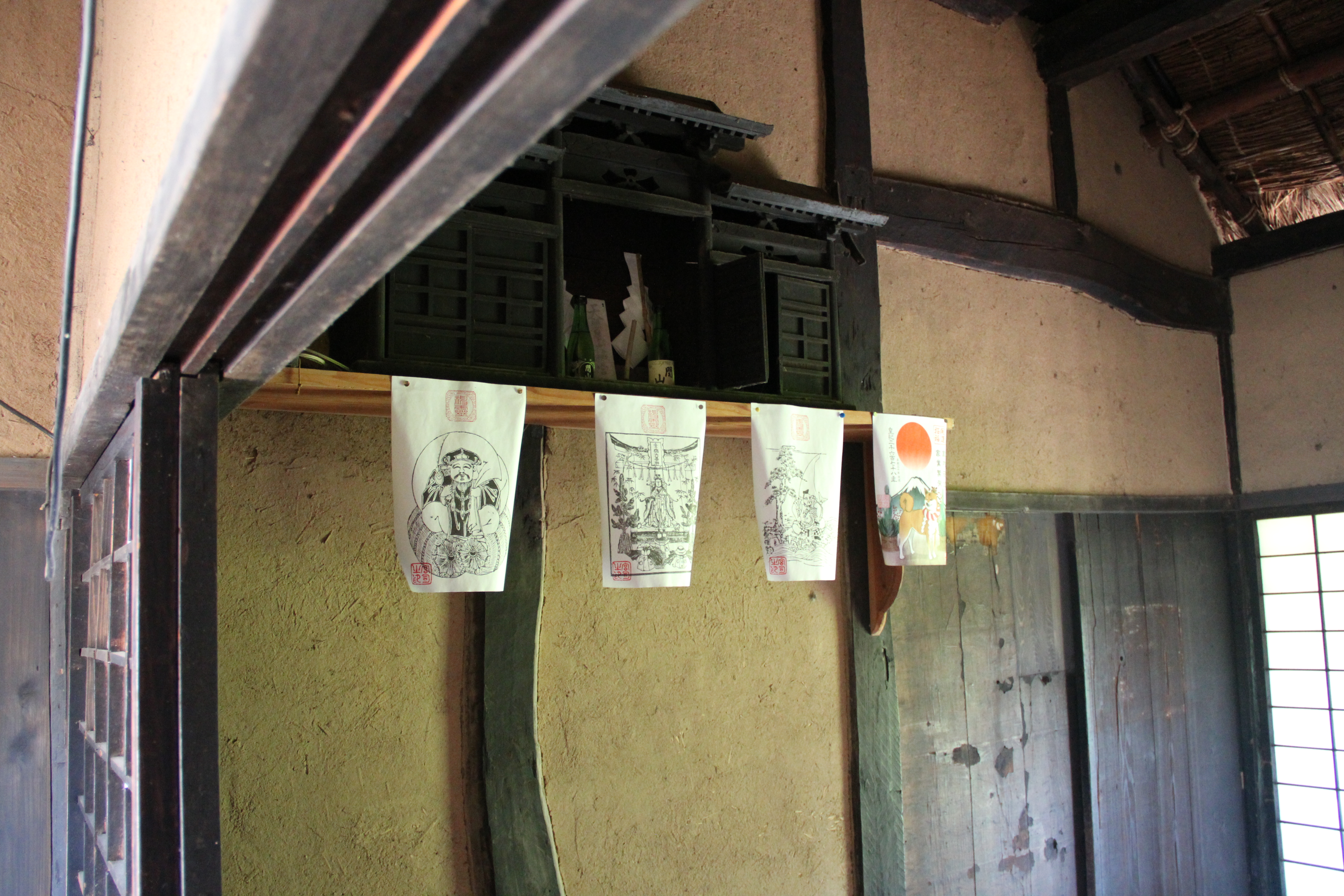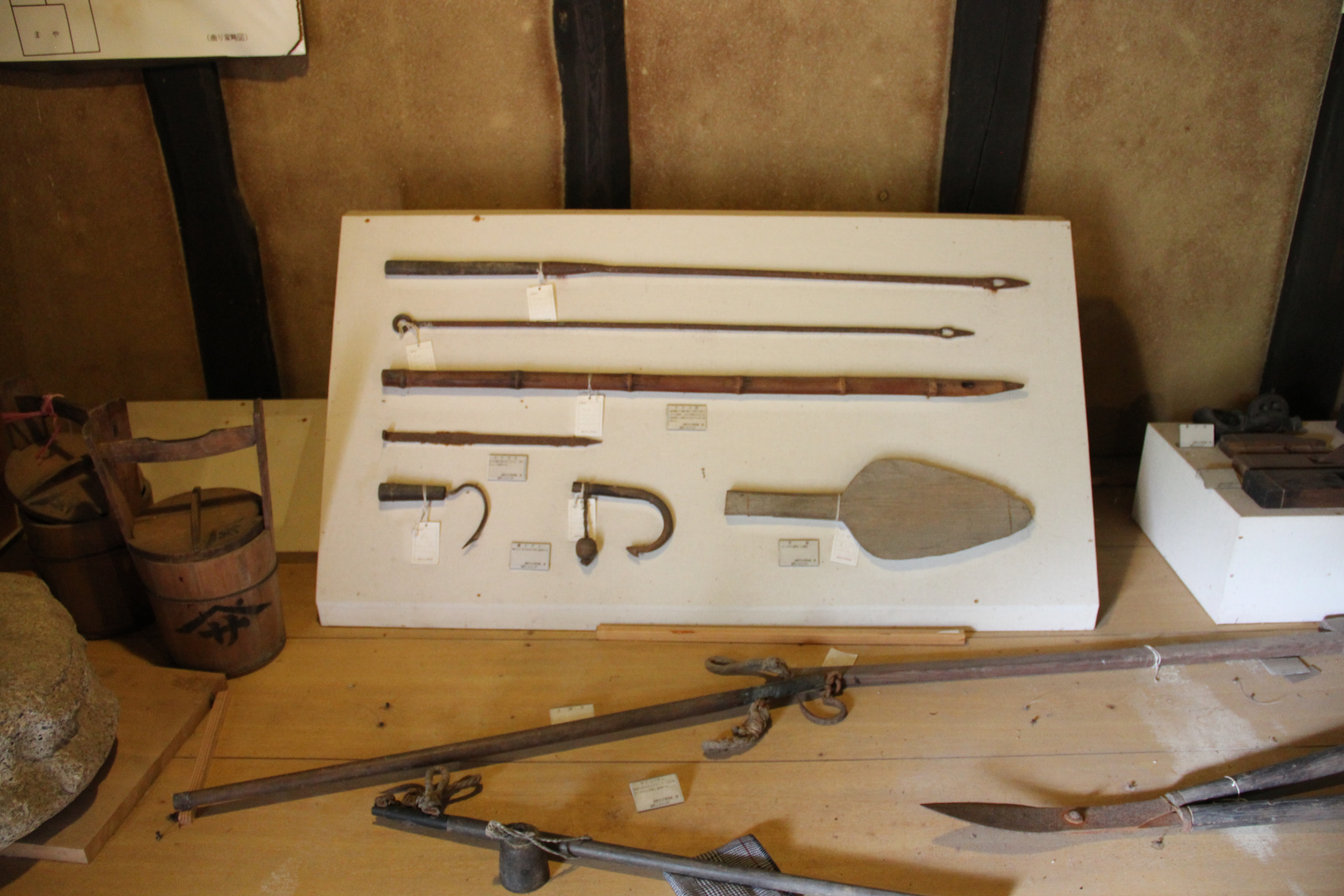 Die erste Station des Tages war netterweise in direkter Lauf-Nähe der Raststätte. Der Weg führte an einem kleinen Schrein (natürlich) sowie einem Fluss entlang. Das Haus selbst war sehr schön anzusehen (noch war ich allein), jedoch war es auch nur etwa ein Drittel so groß wie zum Beispiel der Gegenpart vor ein paar Tagen. Im Inneren gab es wieder eine Feuerstelle (diesmal klugerweise nicht mitten im Raum, sondern so, dass man vom Schuh-Bereich aus an die Feuerstelle heran kam!), und die Räume waren mit historischen Geräten, einem eigenen Brunnen, Fässern und Holz vollgestellt. Beim Rückweg kam mir dann noch eine Gruppe Schüler entgegen – gut, dass ich in Ruhe alles genießen konnte!