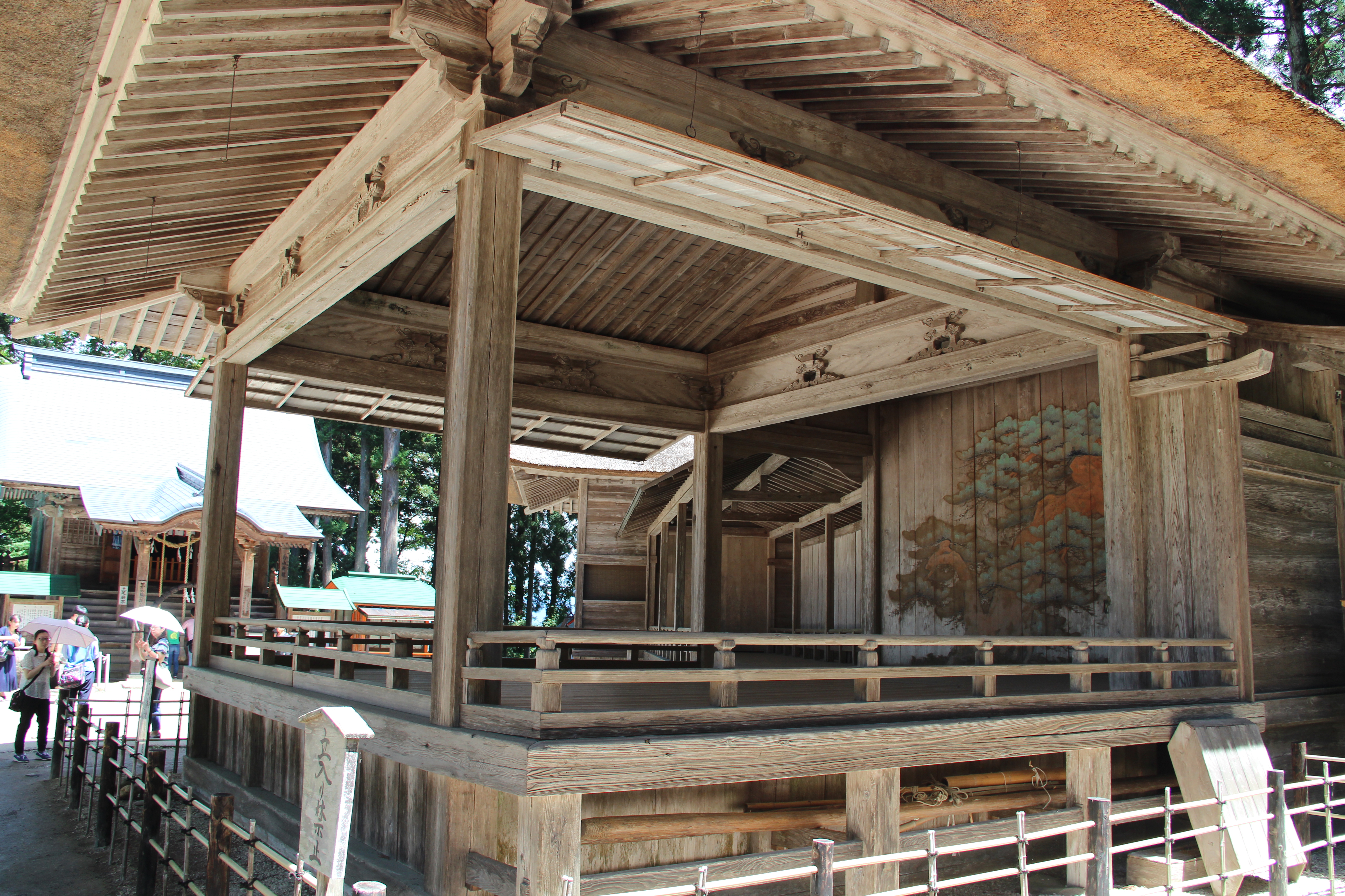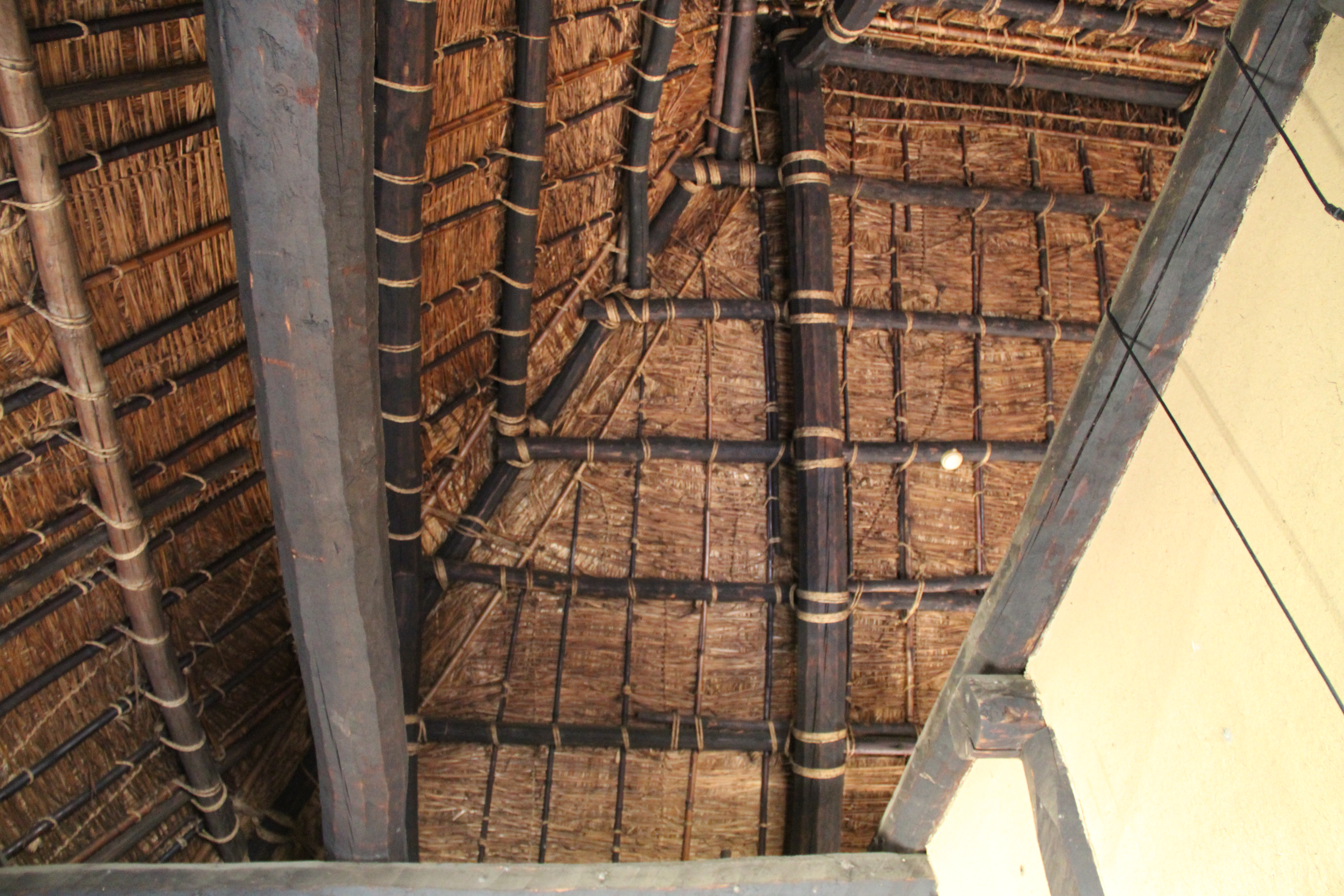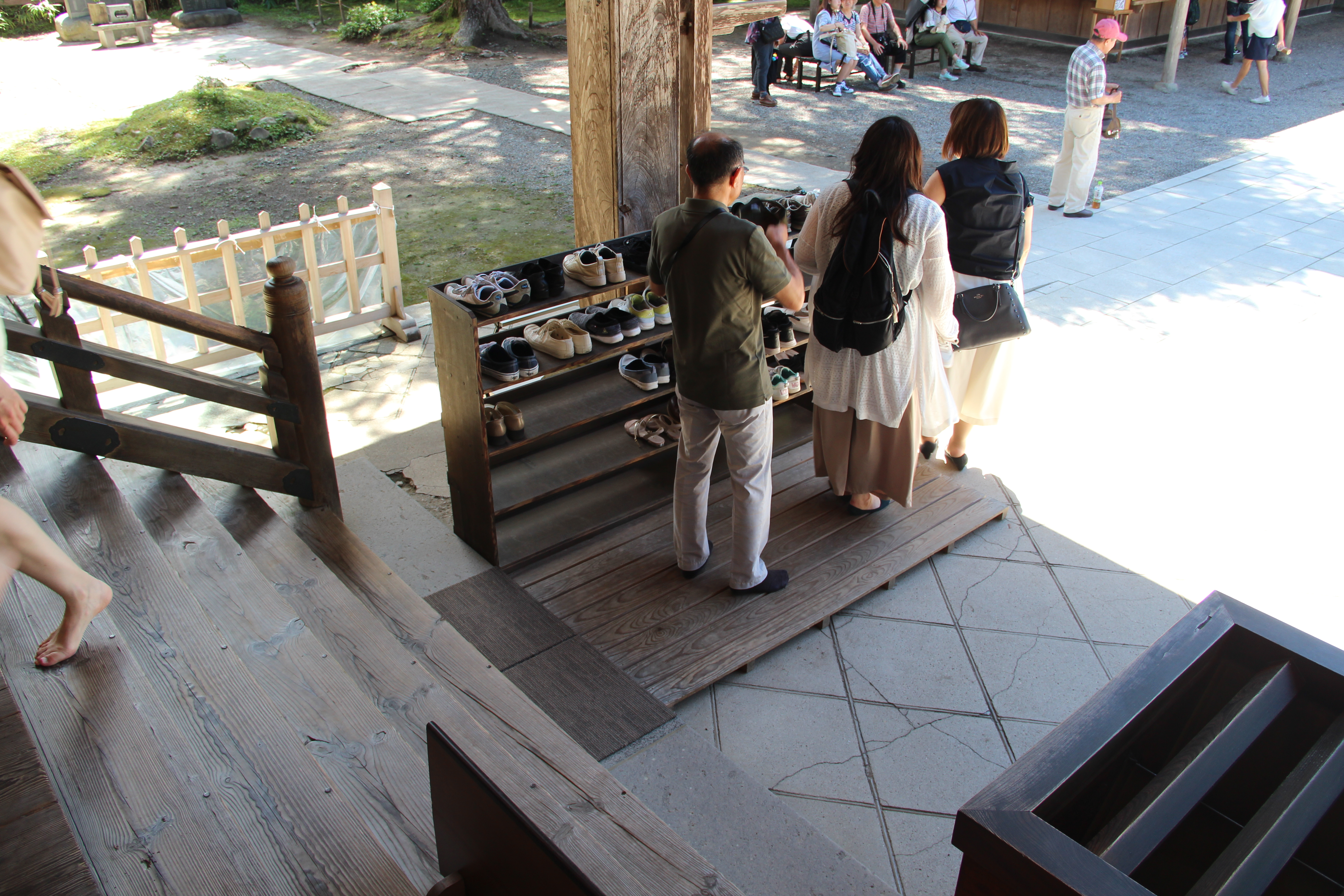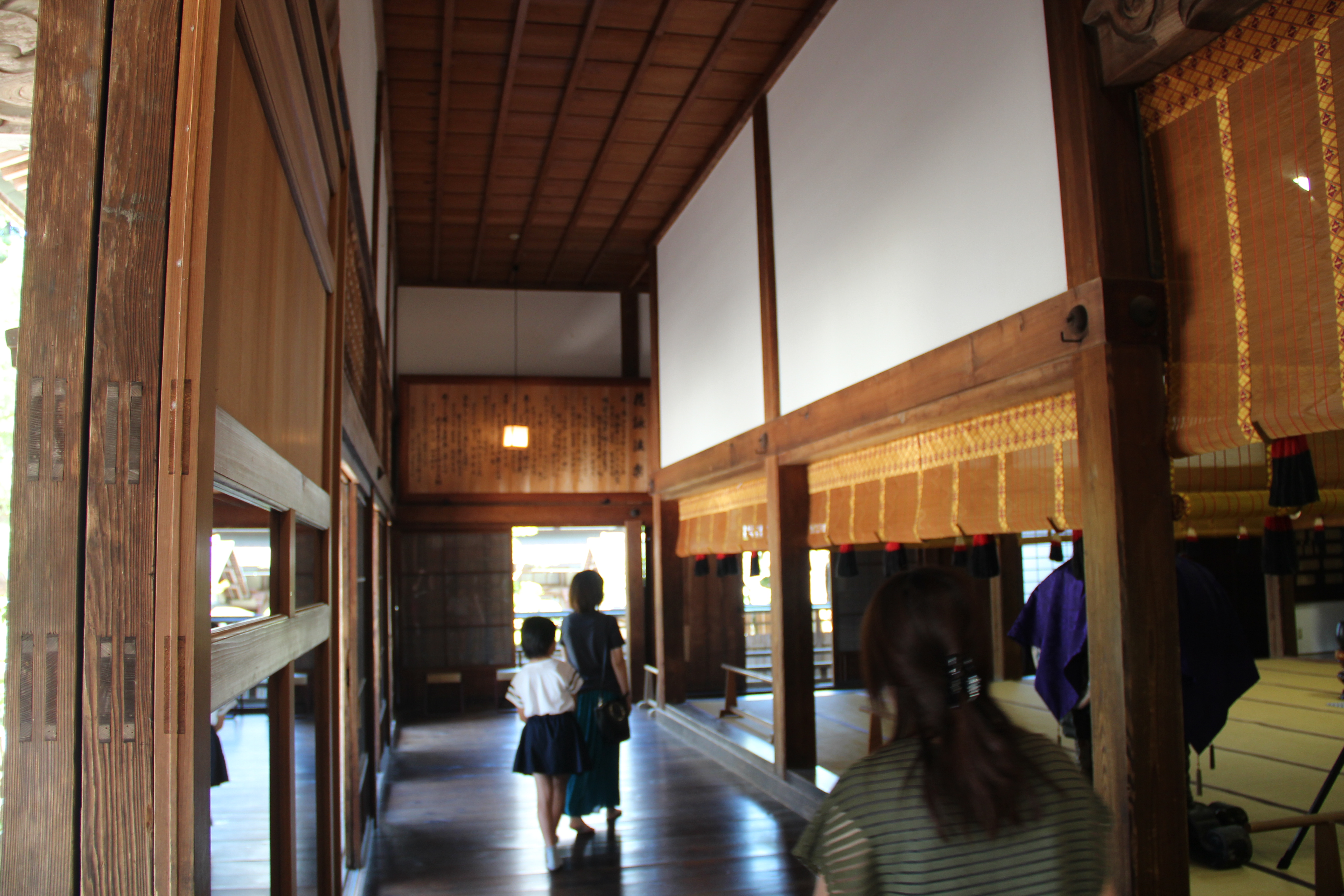 Die erste Station des Tages war netterweise in direkter Lauf-Nähe der Raststätte. Der Weg führte an einem kleinen Schrein (natürlich) sowie einem Fluss entlang. Das Haus selbst war sehr schön anzusehen (noch war ich allein), jedoch war es auch nur etwa ein Drittel so groß wie zum Beispiel der Gegenpart vor ein paar Tagen. Im Inneren gab es wieder eine Feuerstelle (diesmal klugerweise nicht mitten im Raum, sondern so, dass man vom Schuh-Bereich aus an die Feuerstelle heran kam!), und die Räume waren mit historischen Geräten, einem eigenen Brunnen, Fässern und Holz vollgestellt. Beim Rückweg kam mir dann noch eine Gruppe Schüler entgegen – gut, dass ich in Ruhe alles genießen konnte!