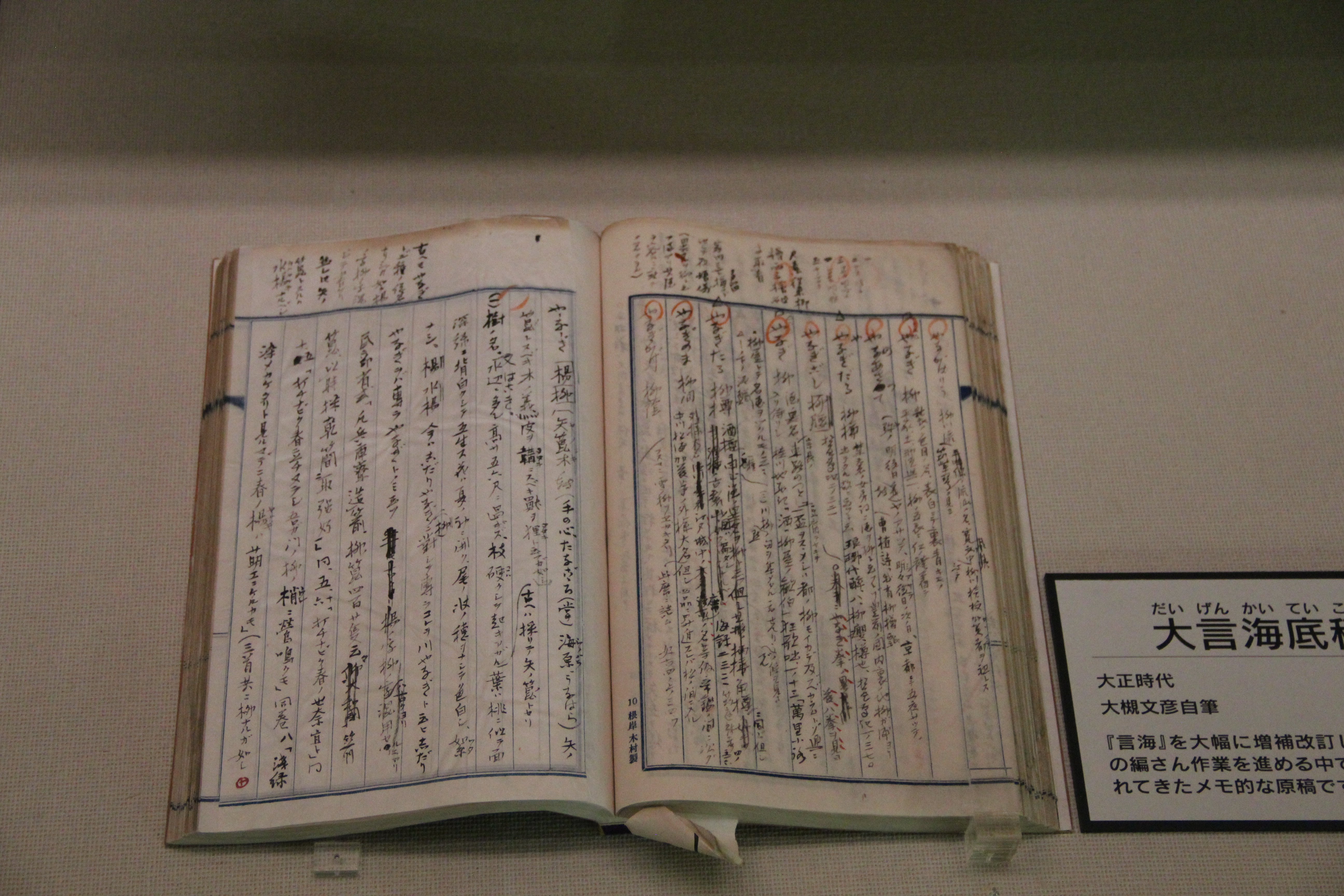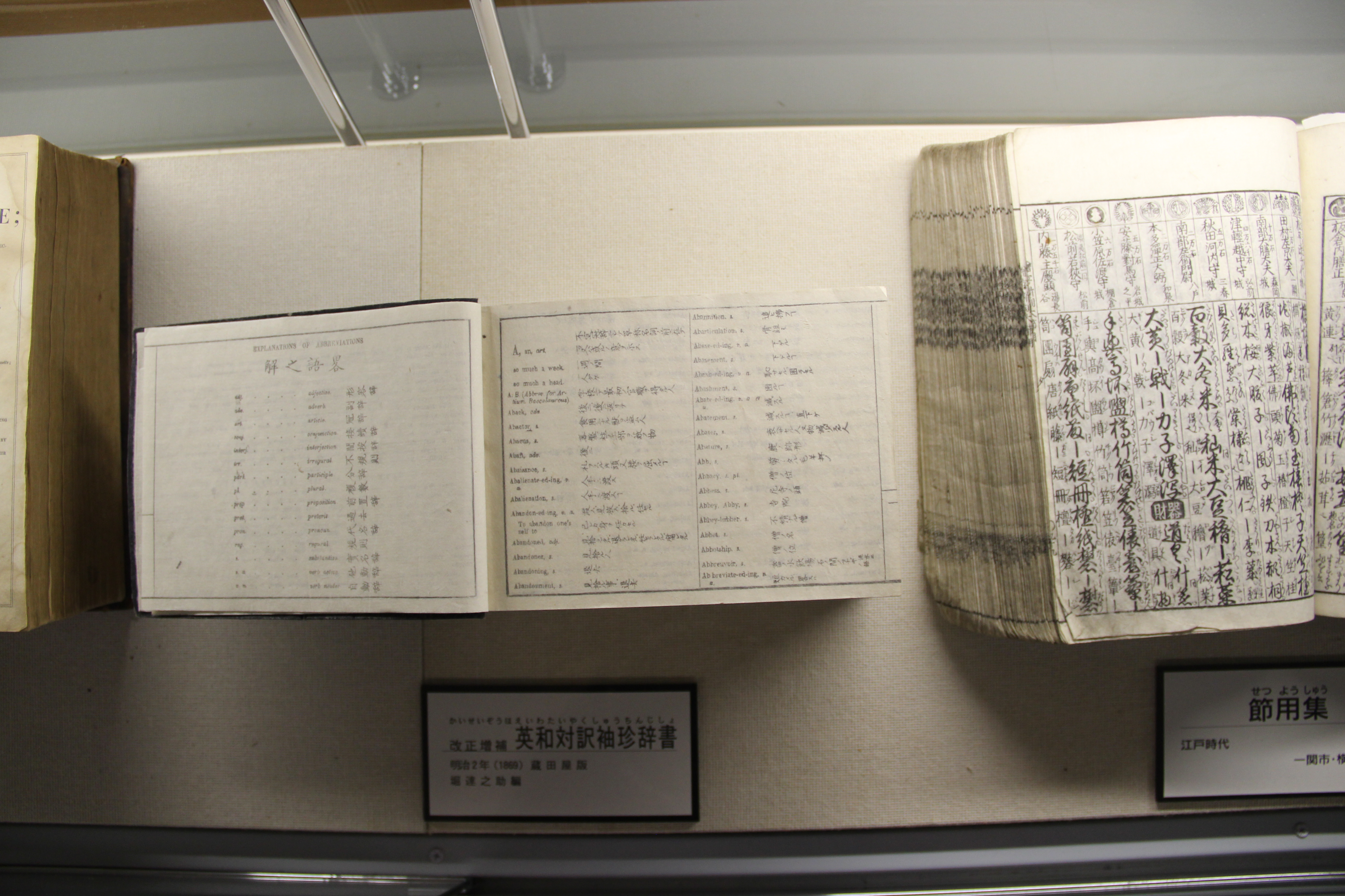 Das Museum ist grundsätzlich in vier Teile aufgeteilt. Einer widmet sich der historischen Mathematik, einer der Entstehung des Wörterbuchs, einer dem Lernen einer germanischen Sprache, und der letzte, größte Bereich, stellte diverse Katana (Schwerter) aus. Die Bilder stelle ich in vier Galerien hintereinander vor, um sie etwas voneinander abzuheben… inhaltlich kann ich zu fast allen Bereichen jedoch nichts sagen. Ähnlich wie im Manga-Museum gestern waren die Ausstellungsstücke zwar interessant anzusehen, jedoch fehlte einfach die Information, was welchen Hintergrund hatte, komplett. So gut wie alle Schilder und Beschriftungen waren wiedermal rein in Japanisch verfügbar. Einzig und allein die Schilder für die vier unterschiedlichen Bereiche hatten Englische Untertitel. Wirklich sehr schade, muss man sich doch so alle Informationen selbst ausdenken…