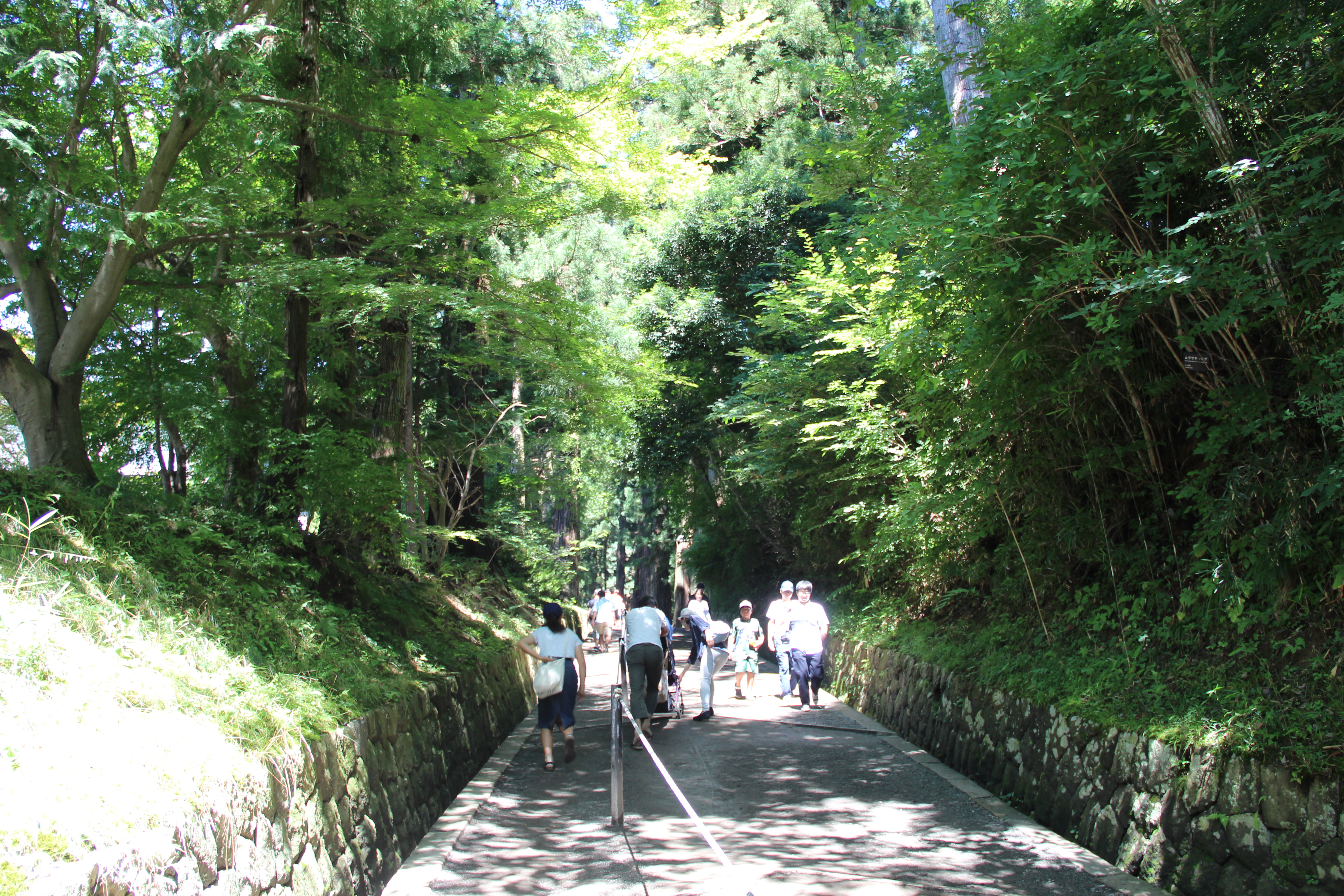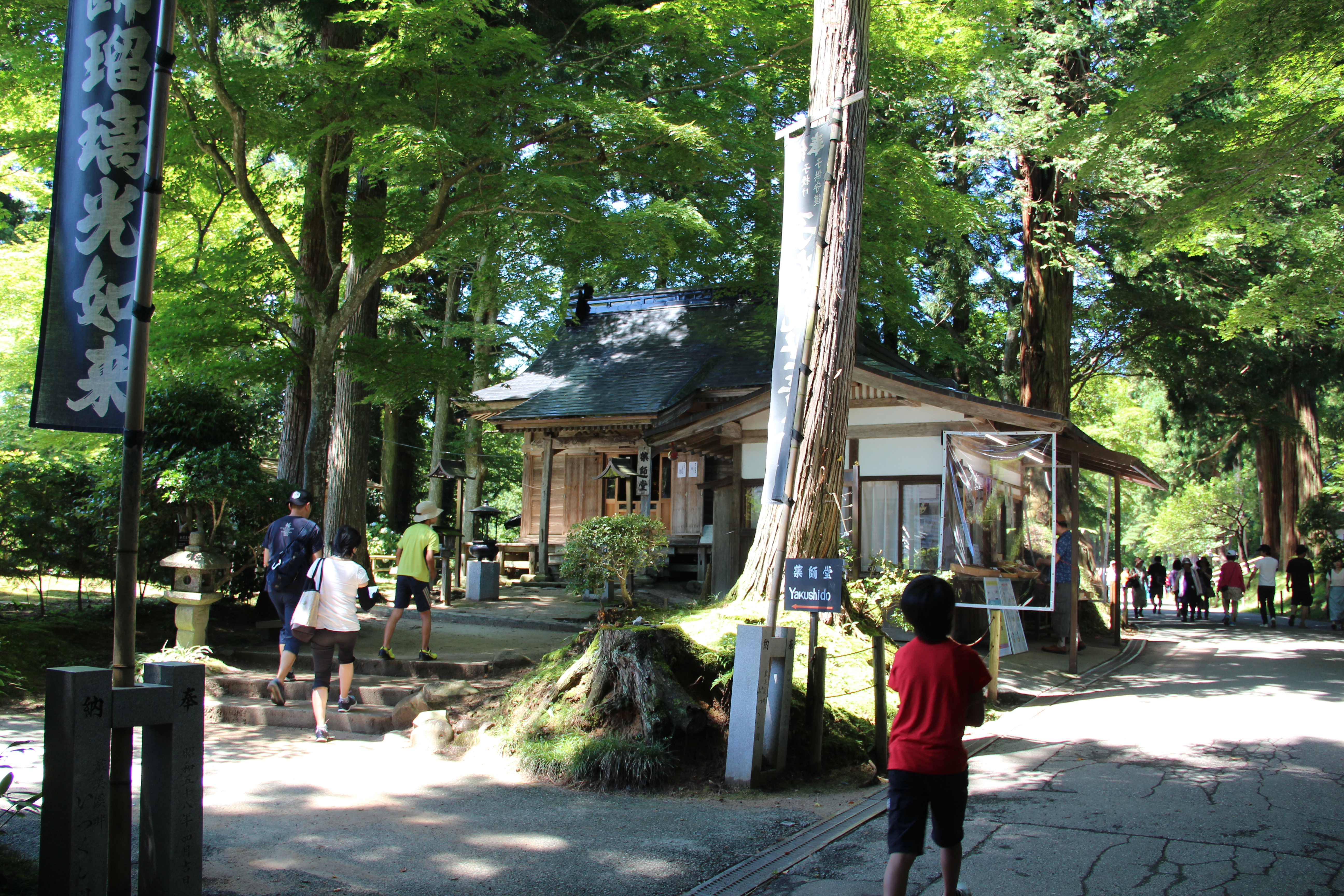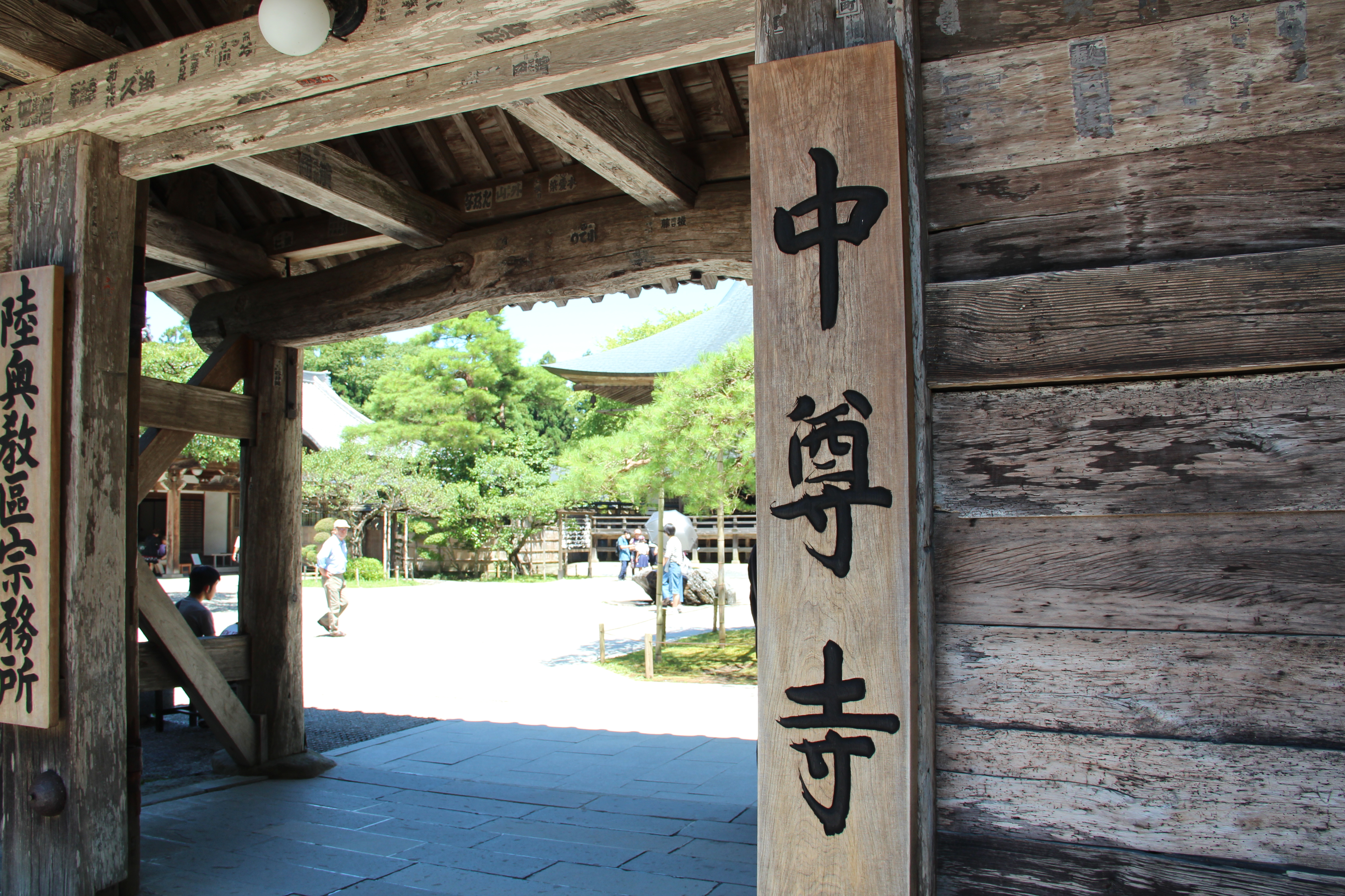 Die Tempelanlage des Chūson-ji ist ein ziemlich groß angelegtes Gelände, mit diversen kleinen Nebengebäuden – darunter auch eine große Glocke (die ich leider nicht hören konnte). Dort hindurch zu schlendern war wirklich angenehm, da alles von Bäumen und Wäldern umringt war, und dadurch schön Schatten spendete. Um an die Anlage zu kommen musste man vom Parkplatz aus eine ganz passable Steigung erklimmen, bei der ich mal wieder von den Japanern überwältigt wurde. Neben Eltern, die Kinderwagen mit Kind drin (!) dort hoch schoben, kraxelten auch Senioren dort entlang, die bei uns gerade noch so mit Rolli eine gerade, geteerte Straße lang gehen würden (für 2 Minuten)… Mein höchster Respekt!!