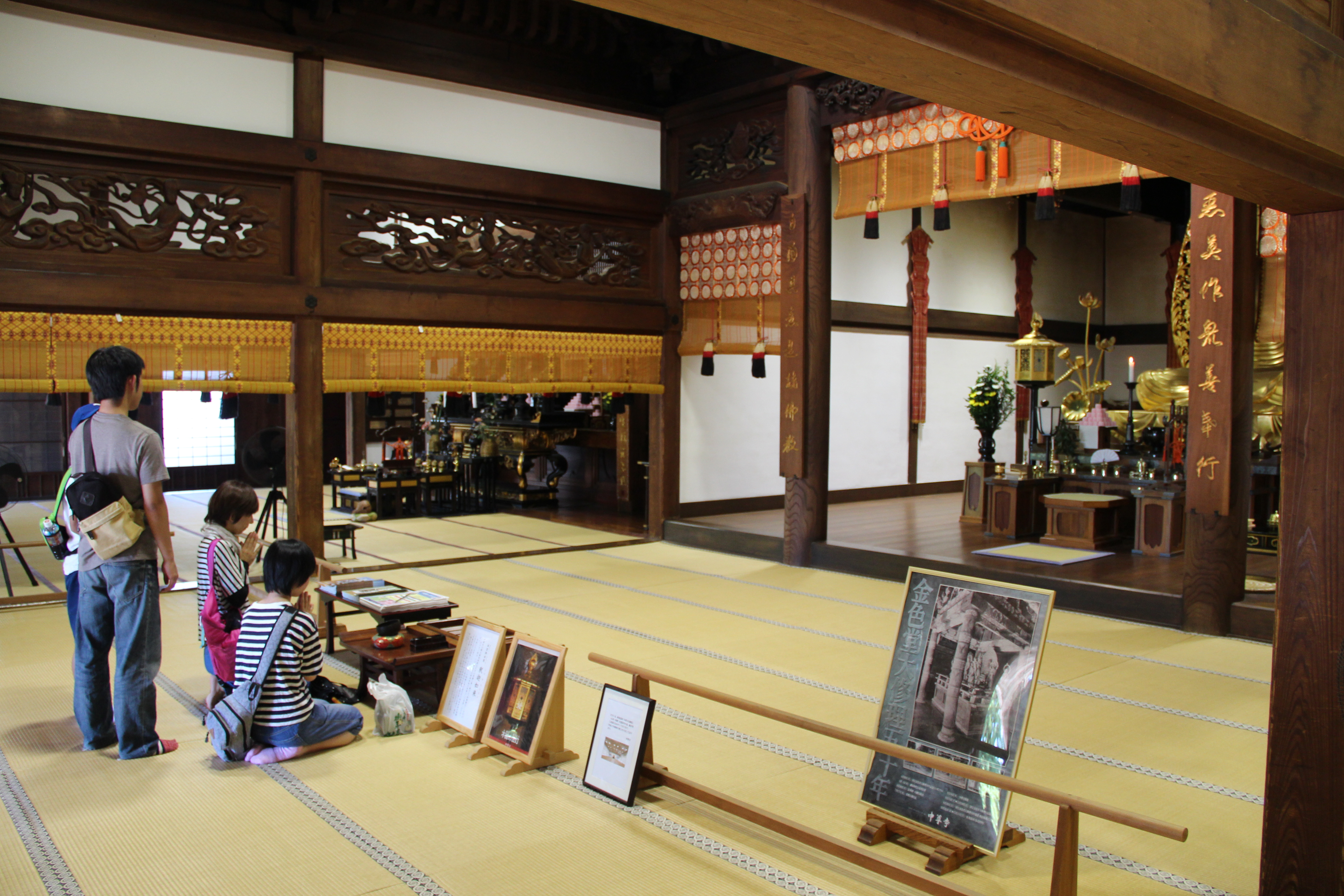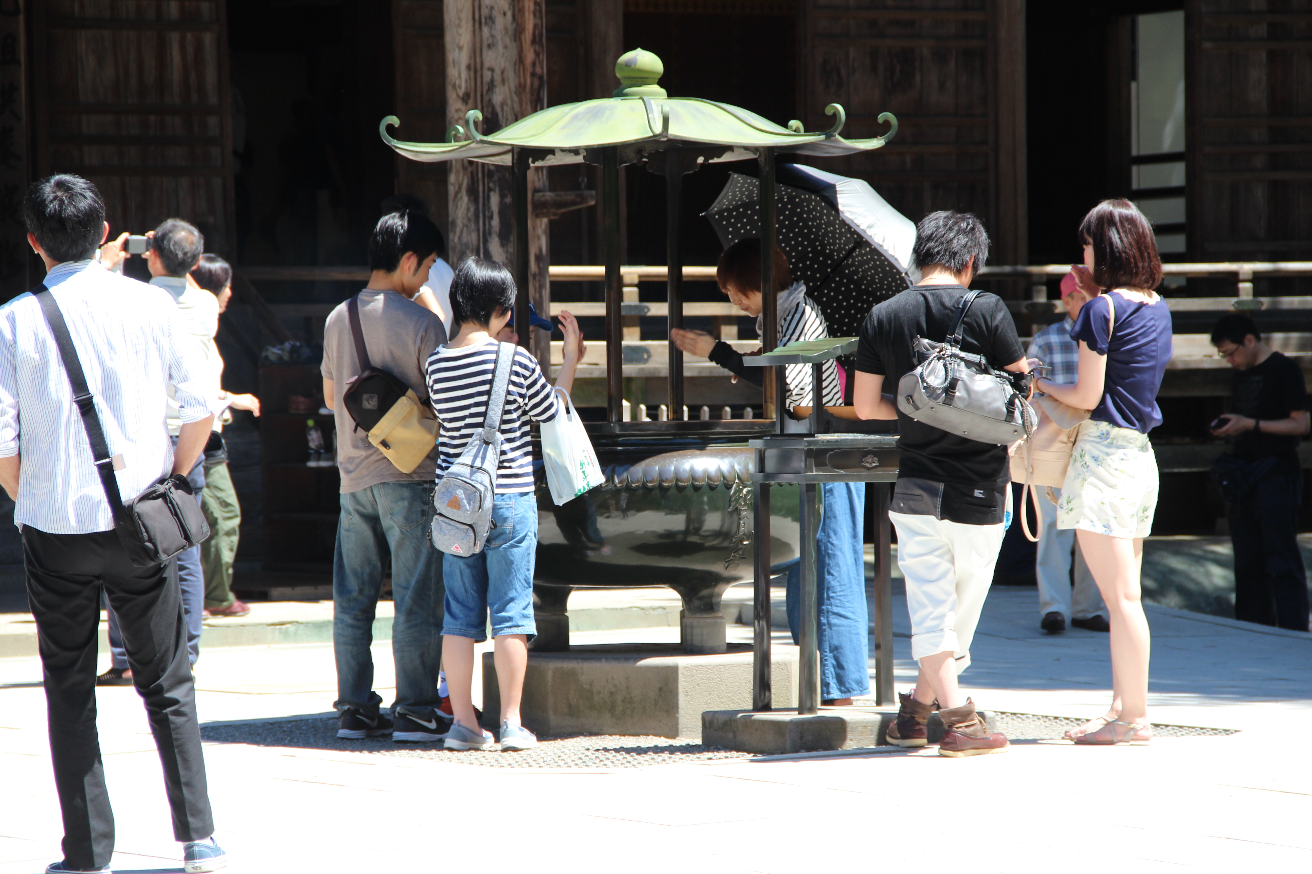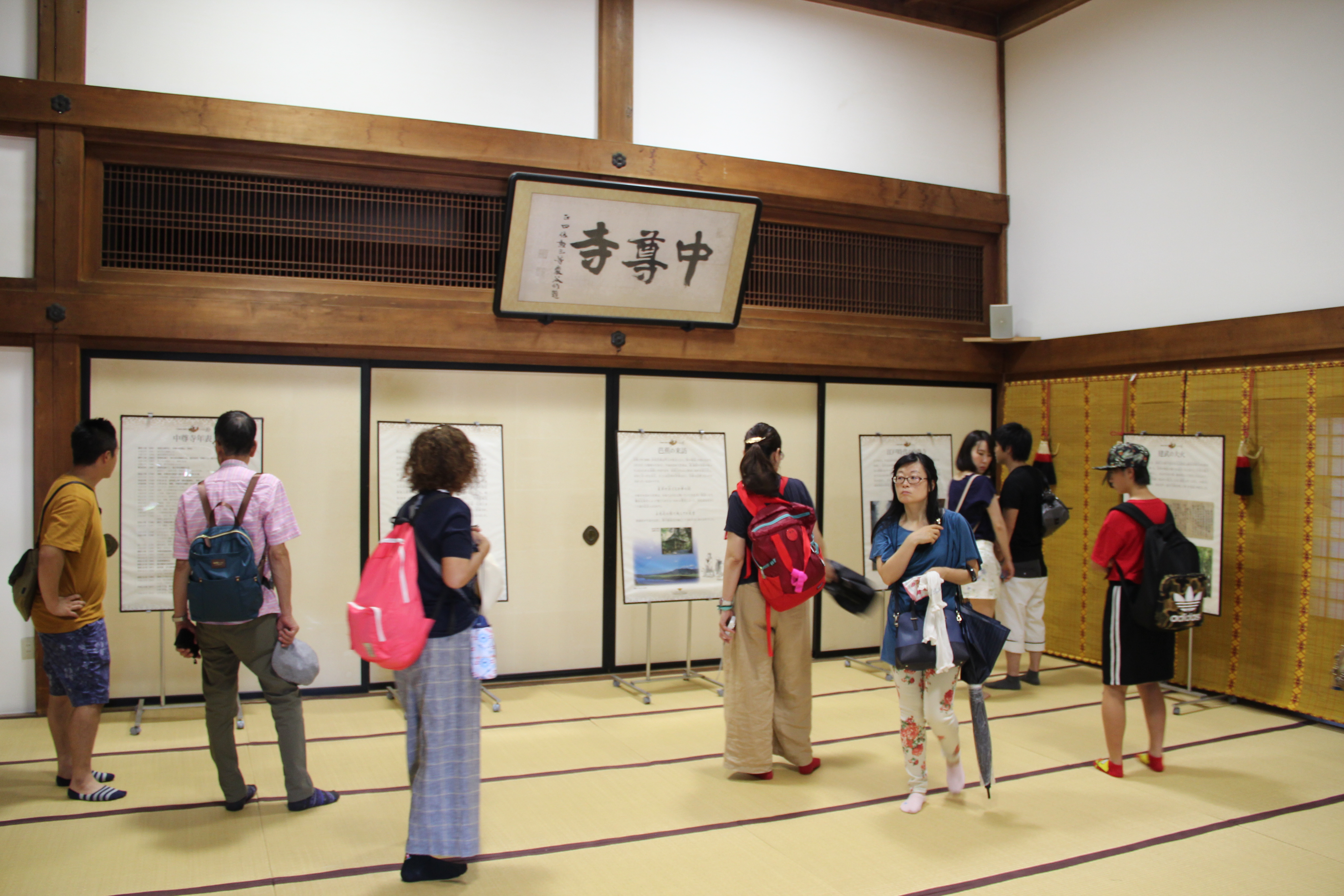Die Tempelanlage des Chūson-ji ist ein ziemlich groß angelegtes Gelände, mit diversen kleinen Nebengebäuden – darunter auch eine große Glocke (die ich leider nicht hören konnte). Dort hindurch zu schlendern war wirklich angenehm, da alles von Bäumen und Wäldern umringt war, und dadurch schön Schatten spendete. Um an die Anlage zu kommen musste man vom Parkplatz aus eine ganz passable Steigung erklimmen, bei der ich mal wieder von den Japanern überwältigt wurde. Neben Eltern, die Kinderwagen mit Kind drin (!) dort hoch schoben, kraxelten auch Senioren dort entlang, die bei uns gerade noch so mit Rolli eine gerade, geteerte Straße lang gehen würden (für 2 Minuten)… Mein höchster Respekt!!