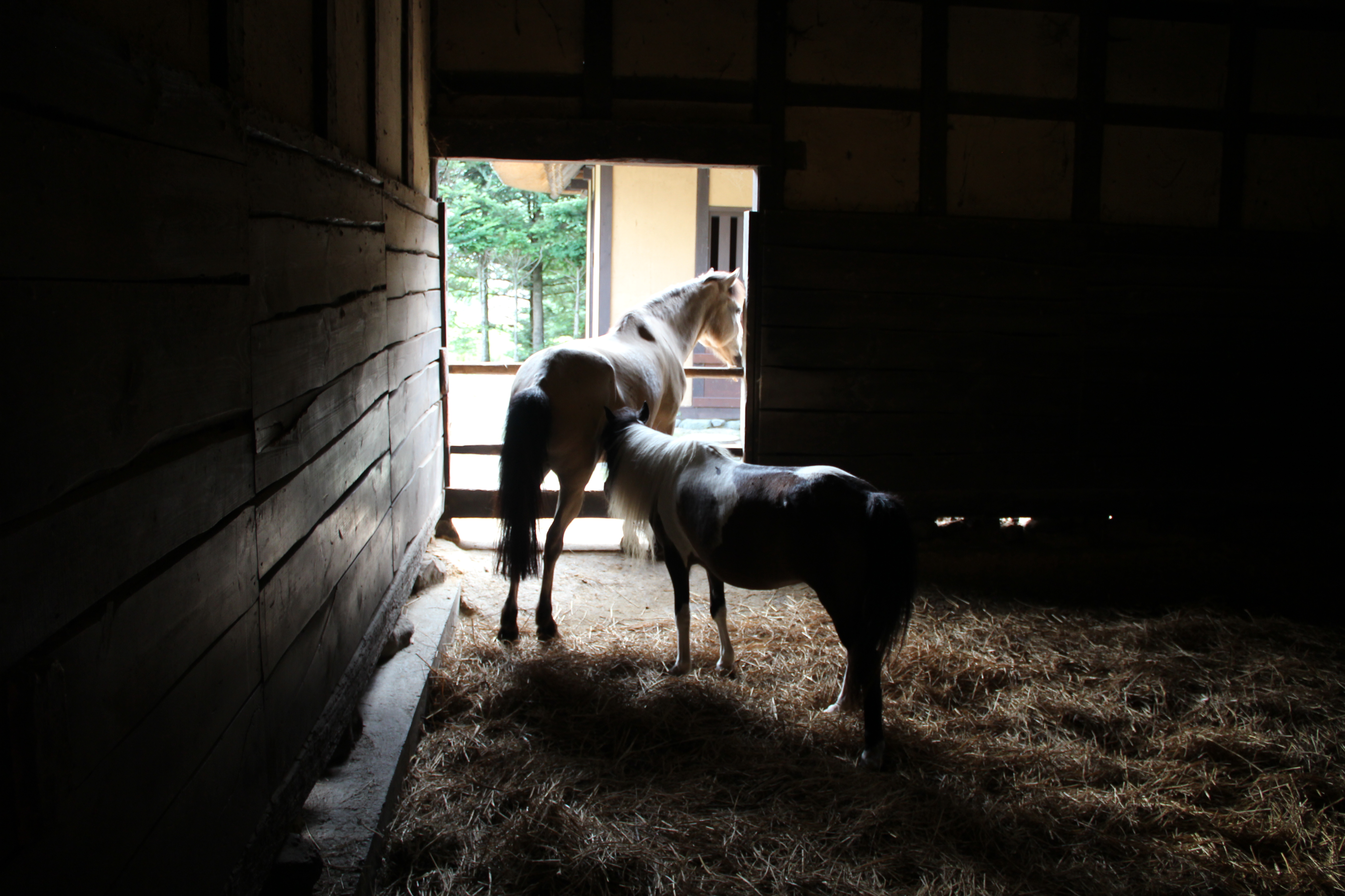 Der letzte Abschnitt des Tages führte in Tono Furusato Village, ein komplett erhaltenes altes Bauerndorf. Auf dem Gelände befinden sich etwa 5-6 Gebäude, dazwischen einige Reisfelder. Ein (natürlicher?) Fluss fließt mitten hindurch, und um das Gelände herum wächst ein Wald. Das alles sorgt dafür, dass man von Straßen, Autos, der modernen Welt im Allgemeinen, einfach nichts mitbekommt! Sehr erholsam. In einem der Gebäude entdeckte ich dann noch zwei Pferdchen, die wohl zu diesem Dorf gehören – die hatten bei der Hitze jedoch überhaupt keinen Bock, sich irgendwie zu bewegen (oder waren nervige Besucher, die eh nie Leckerli hatten, satt) und standen einfach nur im Schatten rum. Putzig anzusehen waren sie trotzdem!
