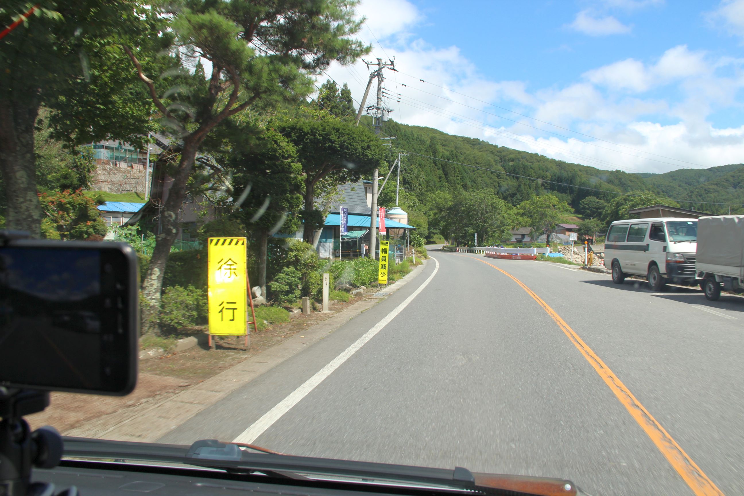 Das heutige Michi no Eki war das in Iwaizumi. Bei meiner Ankunft regnete es dort, was den gesamten Abend anhielt, und ein mögliches draußen quatschen oder rumschlendern ad absurdum führte. Daher nutzte ich die freie Zeit, ein bisschen auf dem Handy rumzudaddeln, etwas im Internet rum zu lesen, und mich über das alle 20 Minuten neu zu verbindende WLAN zu ärgern. Zum Abendessen besuchte ich das in der Raststätte befindliche Restaurant, was ich generell jedoch ziemlich teuer fand. (Hamburger-Set für JPY1.300, welches ich wo anders für 850 hatte, und Tonkatsu-Set für JPY900, das ich bereits früher für deutlich weniger hatte). Dazu kam noch, dass die vorgesetzte Portion etwas traurig aussah – sehr wenig Kohl, ein Kleks Gemüse, und eine nicht volle Suppenschüssel rundeten das Erlebnis ab. Geschmeckt hat es trotzdem, und nochmals muss ich dort zum Glück ja nicht vorbei.