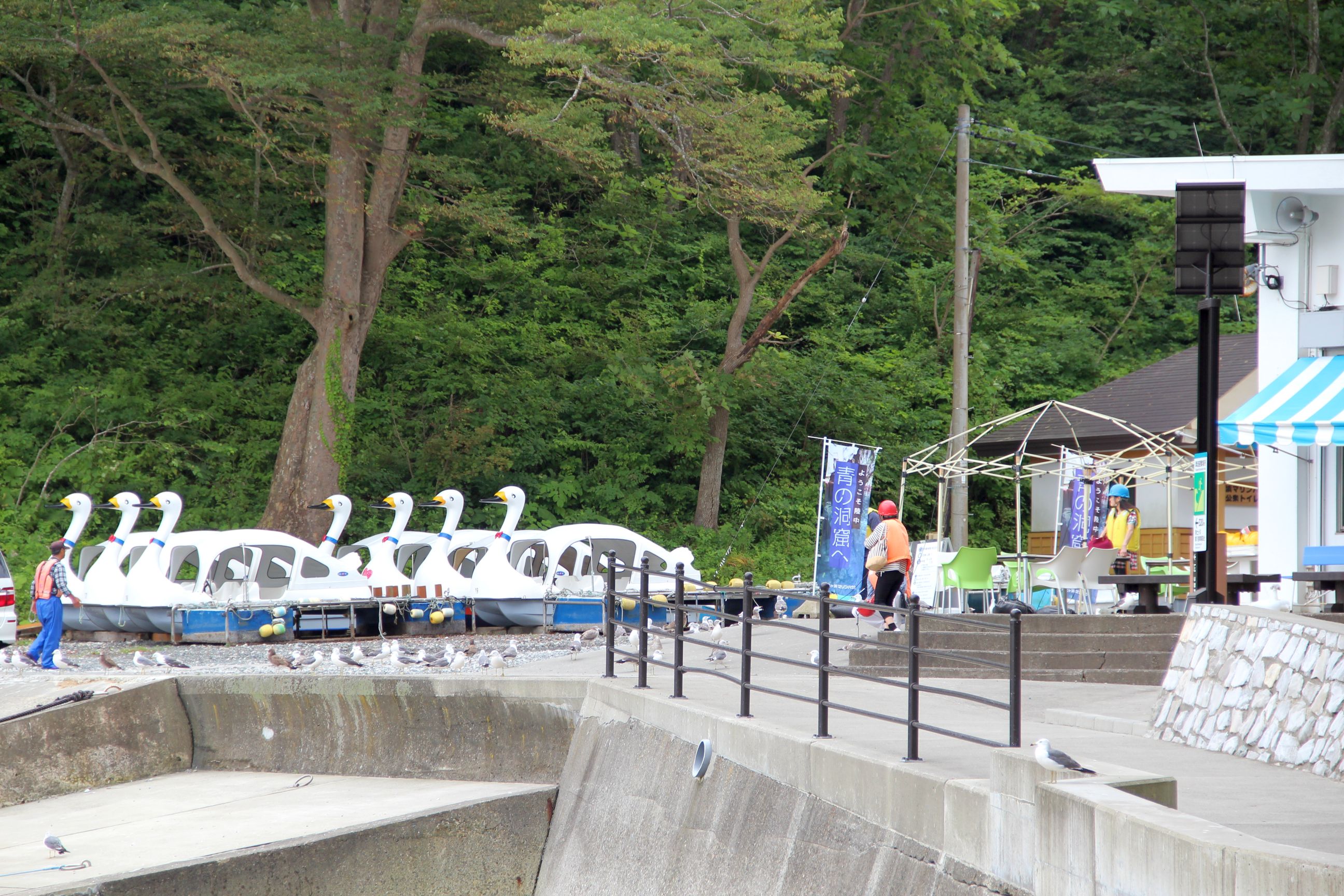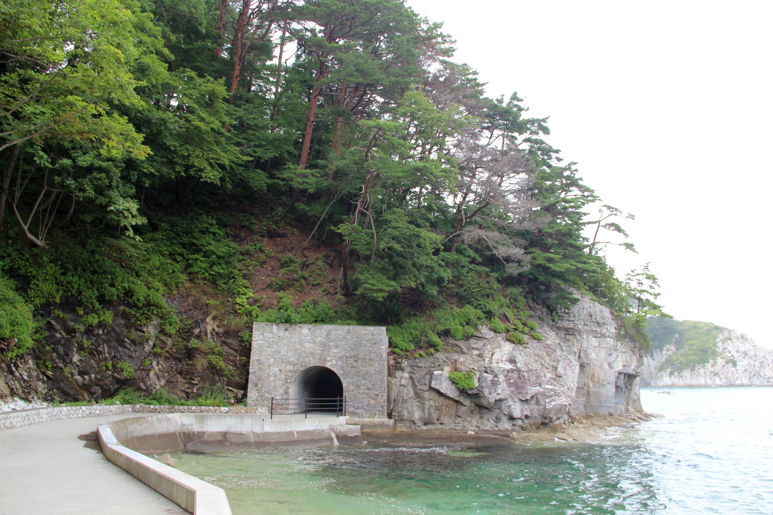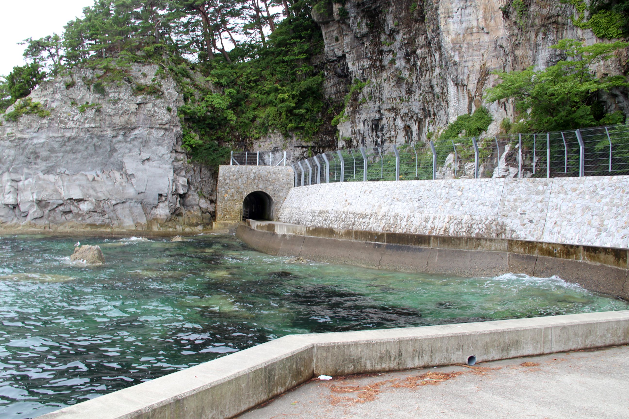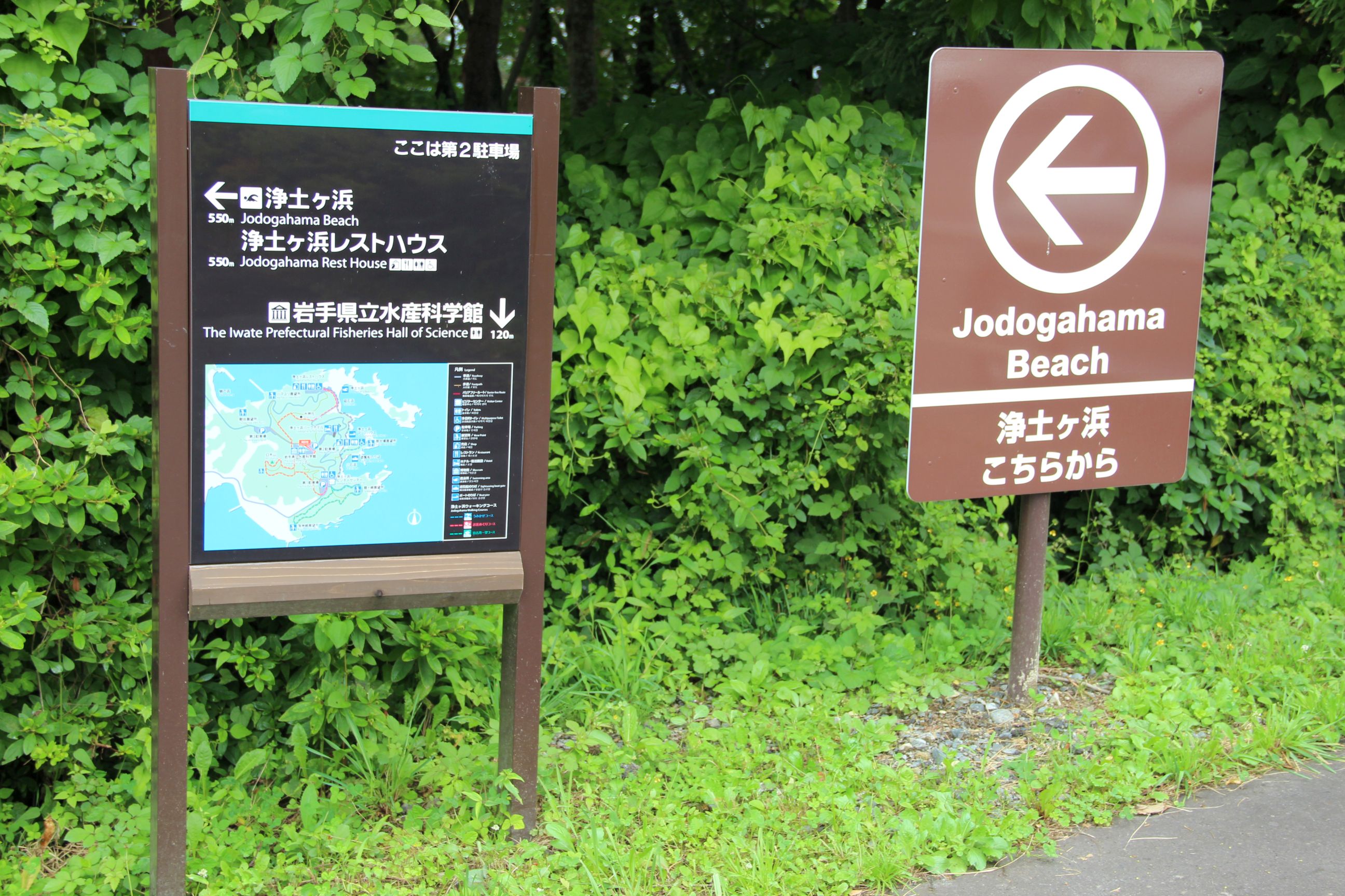 Mein einziger geplanter Stopp des Tages führte mich nach Jōdogahama, einem schönen Fleckchen Land am Meer. Während der Besuch eigentlich mehr das Gefühl bestärkte „Meer ist Meer“ (ich bin ja jedes Jahr in Spanien, daher bin ich das Meer und Küstenabschnitte relativ gewohnt), war es doch irgendwo auch… anders. Ein Teil, der sonst natürlich nicht so auffällt, ist der große Hinweis auf mögliche Tsunami-Gebiete, Tsunami-Zufluchtsorte, bereits erreichte Tsunami-Stände. Zum Teil wird in manchen Bereichen auch noch gebaut, was entweder noch eine Nachwirkung von 2011 sein könnte, oder einfach als Prävention für zukünftige Stark-Beben dienen soll.