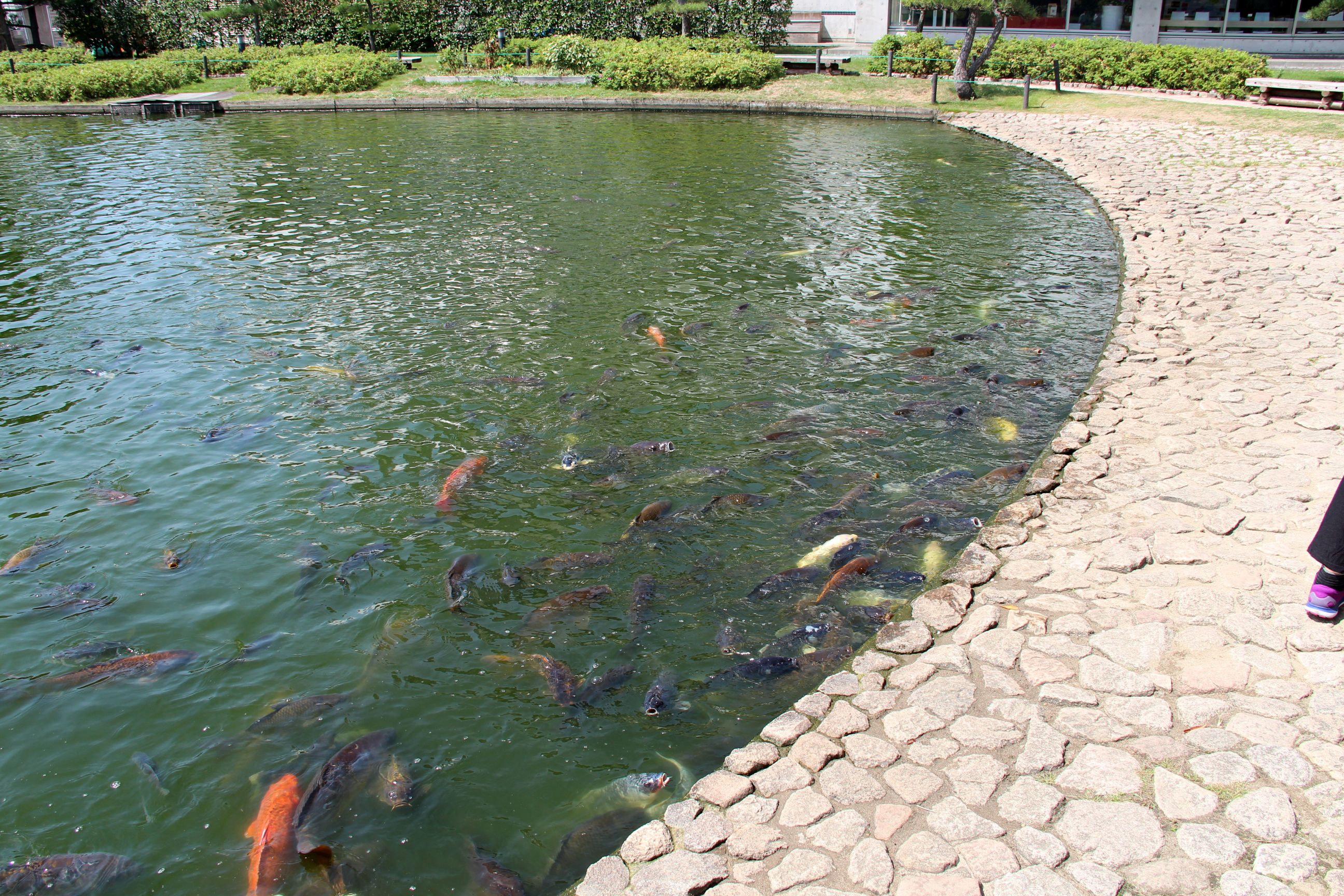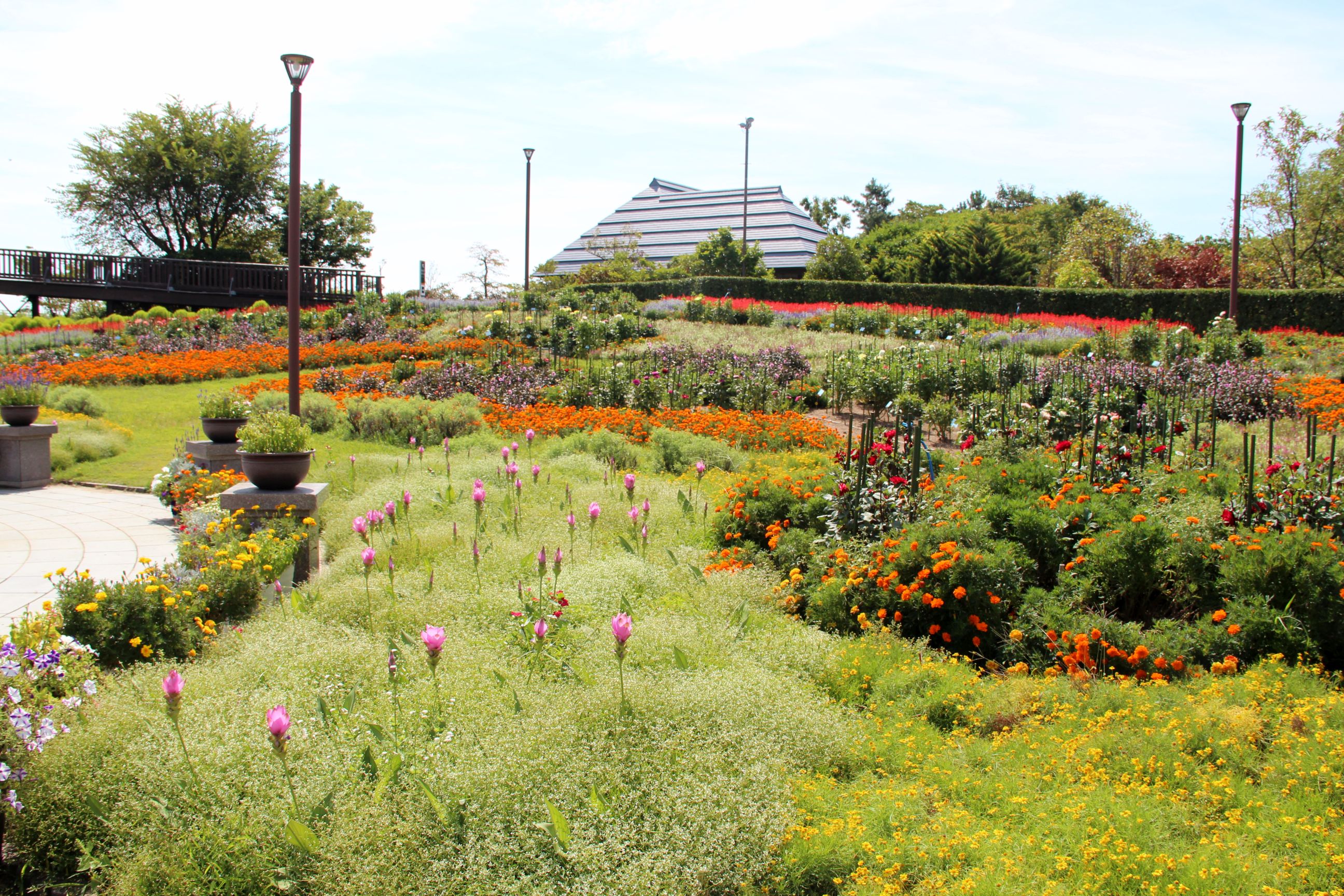 In Niigata begann ich den Tag also damit, die Umgebung meiner Raststätte anzuschauen. Das Furusato Village, auf dessen Parkplatz ich die Nacht verbracht hatte, war ein für Kinder hergerichteter Freizeitpark, den ich dann doch nicht groß erkunden wollte. Aber es gab auch einen schön angelegten Garten mit Koi-Teich, sowie ein hinter dem Gebäude gelegenen Blumenbeet, welches ich sehr schön fand.