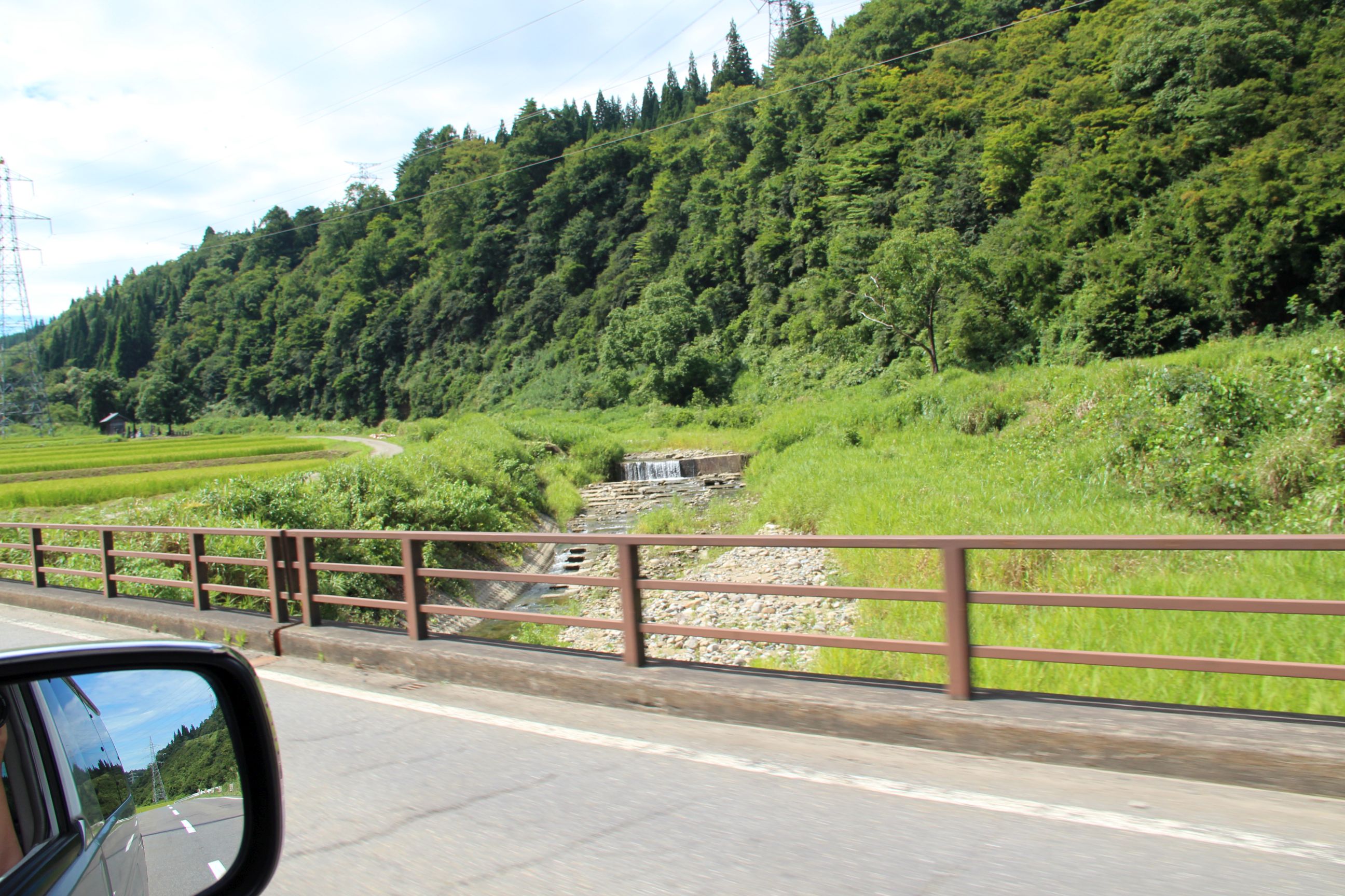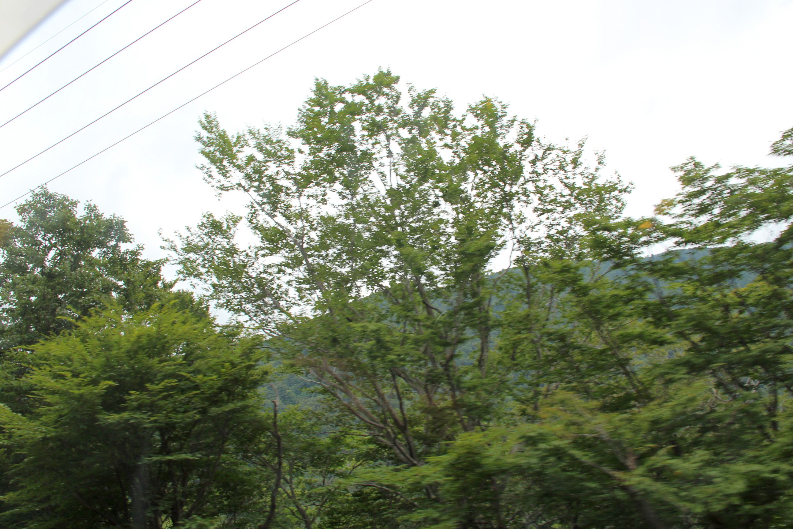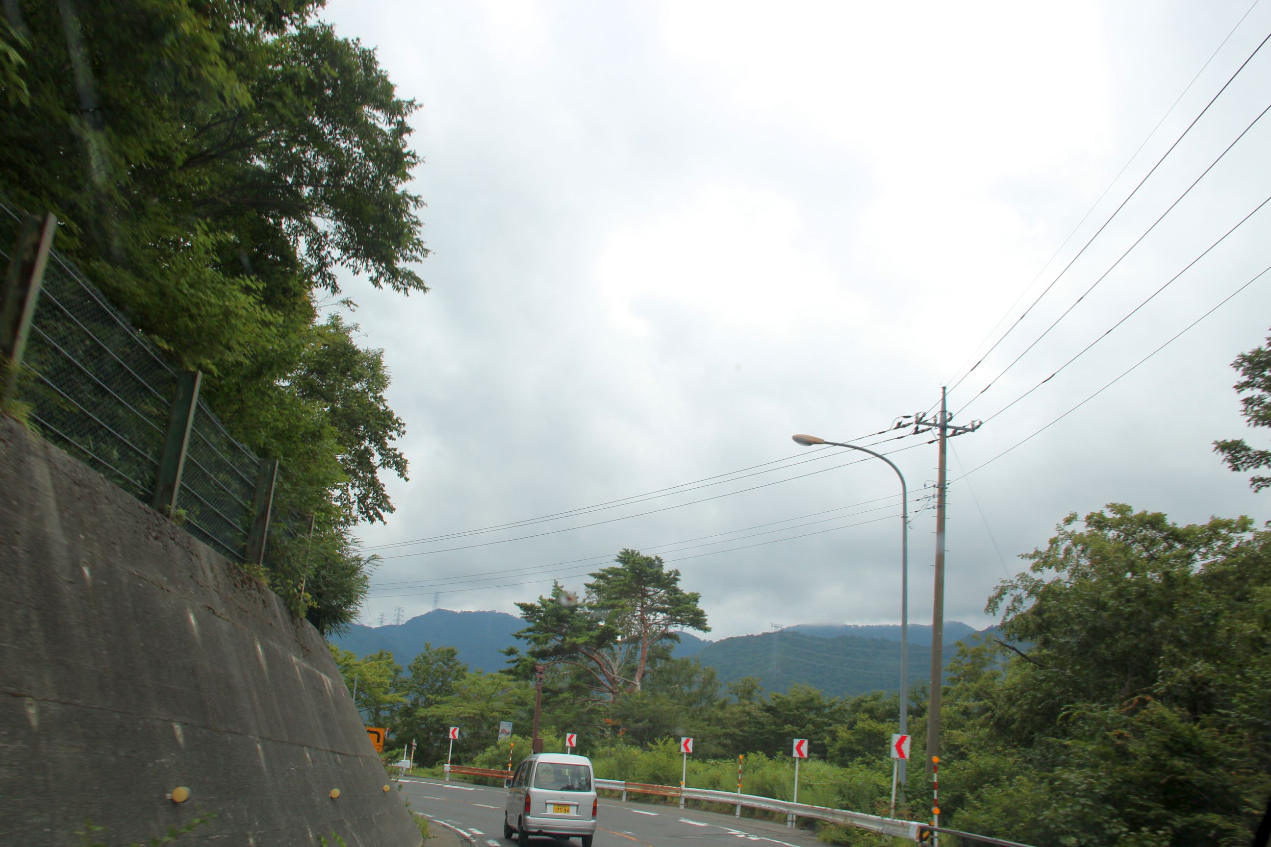 Nach einer relativ langen Nacht ging der Tag auch erst um halb zehn weiter. Auf dem Plan stand eigentlich noch ein Schrein (Kichijoji Temple in Gunma), der sich praktischerweise auf dem Weg befunden hätte – da hatte ich dann effektiv aber keine Lust zu halten. Bei brutzeligen 34° Celcius durfte der Fahrtwind nicht ausbleiben, und so ging es den Vormittag über also 120km durch Berge und Wälder. Interessant war dabei, dass in einigen Tunneln auf der Strecke Reparaturen oder Bauarbeiten durchgeführt wurden. Aber die Japaner bekommen es mit ihren Wegweisern und Verkehrspolizisten hin, dass sich nichts aufstaut, und man immer schnell wieder weiter kommt. Da funktioniert das System einfach! Wie bei den letzten Roadtrips auch, hier ein paar Schnappschüsse der Umgebung, aus den Fenstern heraus.