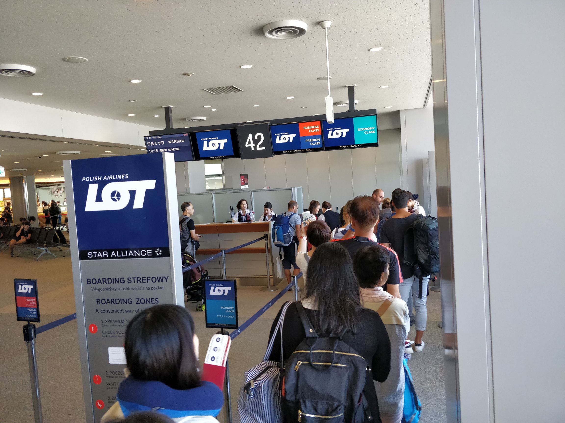 Bei der Ankunft in Warschau musste ich mal wieder den Kopf schütteln, da ein großteil der Passagiere nach dem Aufsetzem auf dem Boden bereits ihren Gurt lösten, und begannen, ihr Gepäck aus den Fächern zu holen, und im Flugzeug herum zu laufen. Was so schwer daran ist, zu merken, dass das Flugzeug noch im „Taxi“ Modus zum Gate rollt, das „Anschnallen“-Symbol noch leuchtet, und man einfach noch nicht wirklich angekommen ist, wird mir ein ewiges Rätsel bleiben. Effektiv mussten wir dann stehen bleiben, und die Stewardessen kamen angelaufen, um alle Passagiere zurück auf ihre Plätze zu bitten, damit wir weiter rollen konnten…. hach.