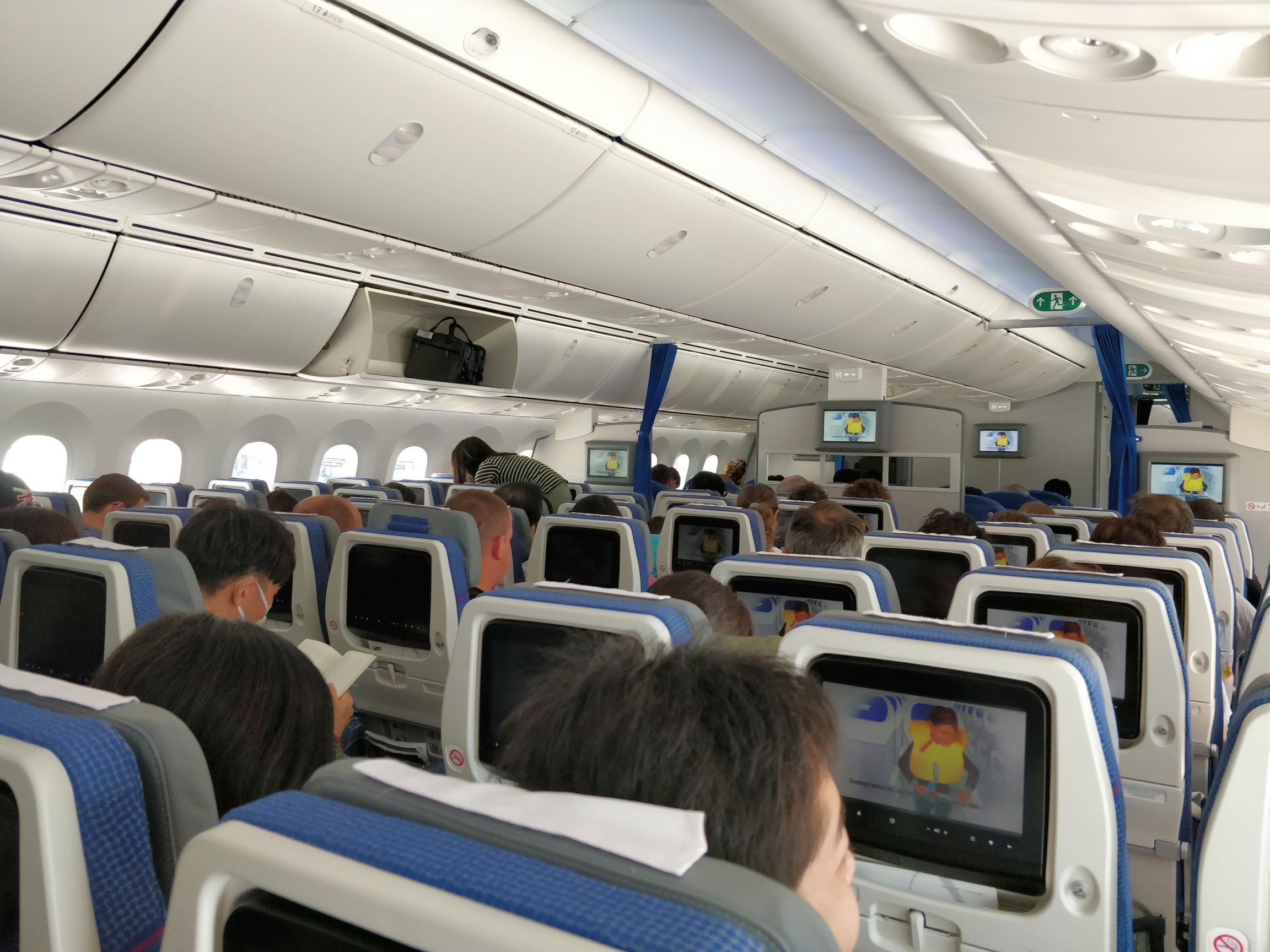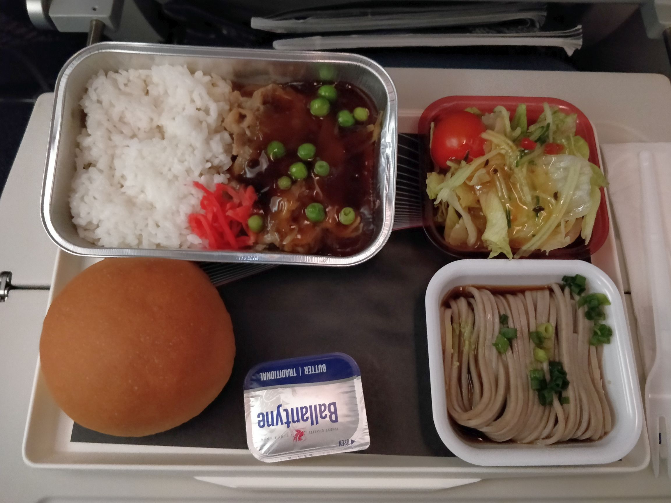 Ein weiterer Höhepunkt des langen Flugs war es, dass ich mir Gott sei Dank bei Netflix einige Episoden „Orange is the new black“ heruntergeladen hatte. Ansonsten wäre der Flug wahrscheinlich seeeeeehr zäh geworden. In meinem Segment des Flugzeugs fiel nämlich etwa 40 Minuten nach Abflug das gesamte Entertainmentsystem aus. Fluginfo? Musik? Filme? Lichtschalter? No, no. Alles tot. Einige Passagiere (darunter auch meine zwei japanischen Nebensitzerinnen) liesen sich in einen anderen Bereich des Flugzeugs umsiedeln. Aber durch die offline verfügbare Unterhaltung war ich darauf nicht angewiesen (die USB-Buchse am Display hatte trotzdem noch Strom, kein Problem also!). So hatte ich immerhin den Luxus, drei ganze Sitzplätze für mich zu haben, was ich auch gerne annahm.