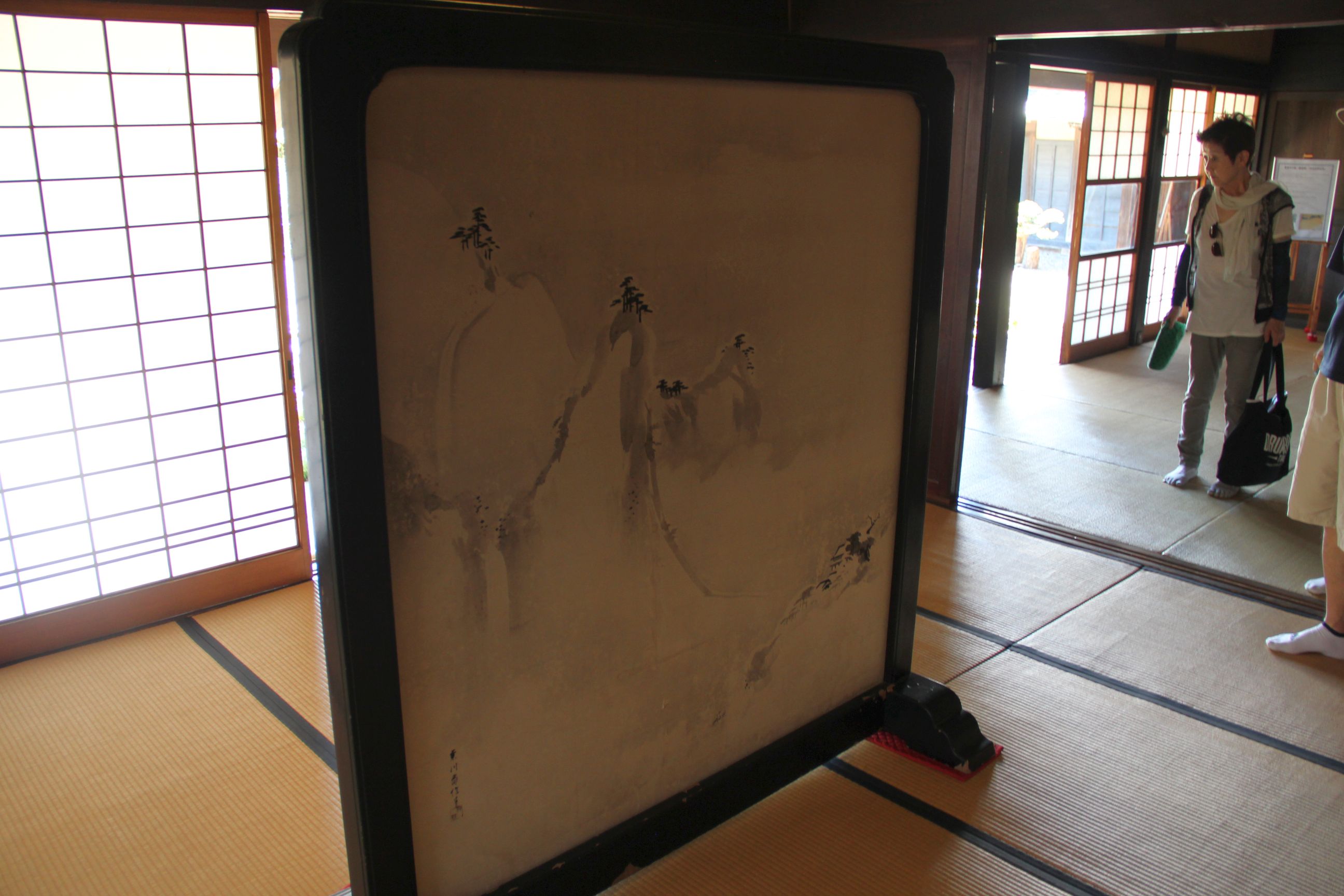 Der letzte Sightseeingpunkt der Reise war das Old Yoshida Family House, ein altes japanisches Haus einer Samuraifamilie. Große Teile davon können besichtigt werden und geben einen guten Eindruck davon, wie damals gelebt und gehaust wurde. Glücklicherweise kam ich zeitlich so praktisch an, dass gerade eine Führung begann, der ich mich anschloss. Der Erzähler war ein älterer Herr (vermutlich so 80? Bei Asiaten bin ich da noch mehr aufgeschmissen als bei Europäern!!), der unglaublich viel Wissen zu der Epoche des Hauses, dessen Bau, Architektur und und und hatte. Leider konnte ich jedoch nur sehr wenig davon verstehen. Ich bin mir nicht sicher, ob er einen Akzent hatte, einfach nur Senioren-Genuschelt hat, oder ob mein Kopf aufgrund der vorherrschenden Hitze abgeschalten war (heute war nochmal extrem heiß!), aber irgendwann seilte ich mich dann kapitulierend von der Gruppe ab und erkundete das Haus allein. Der Aufbau war natürlich sehr schön, und ich liebe bekanntlich ja alte japanische Häuser, doch leider hat es mich nicht so sehr mitgerissen, wie das Haus an.. Tag 3? oder so. Ich vermute ja, dass es daran lag, dass das Samurai-Haus sehr nobel angehaucht war. Viele Räume zur Begrüßung von Gästen, zum Abhalten von Teezeremonien, und so weiter. Das Haus am Anfang war wirklich das Haus einer (vermute ich mal?) kleineren Familie, es hatte einfach etwas nahbareres.