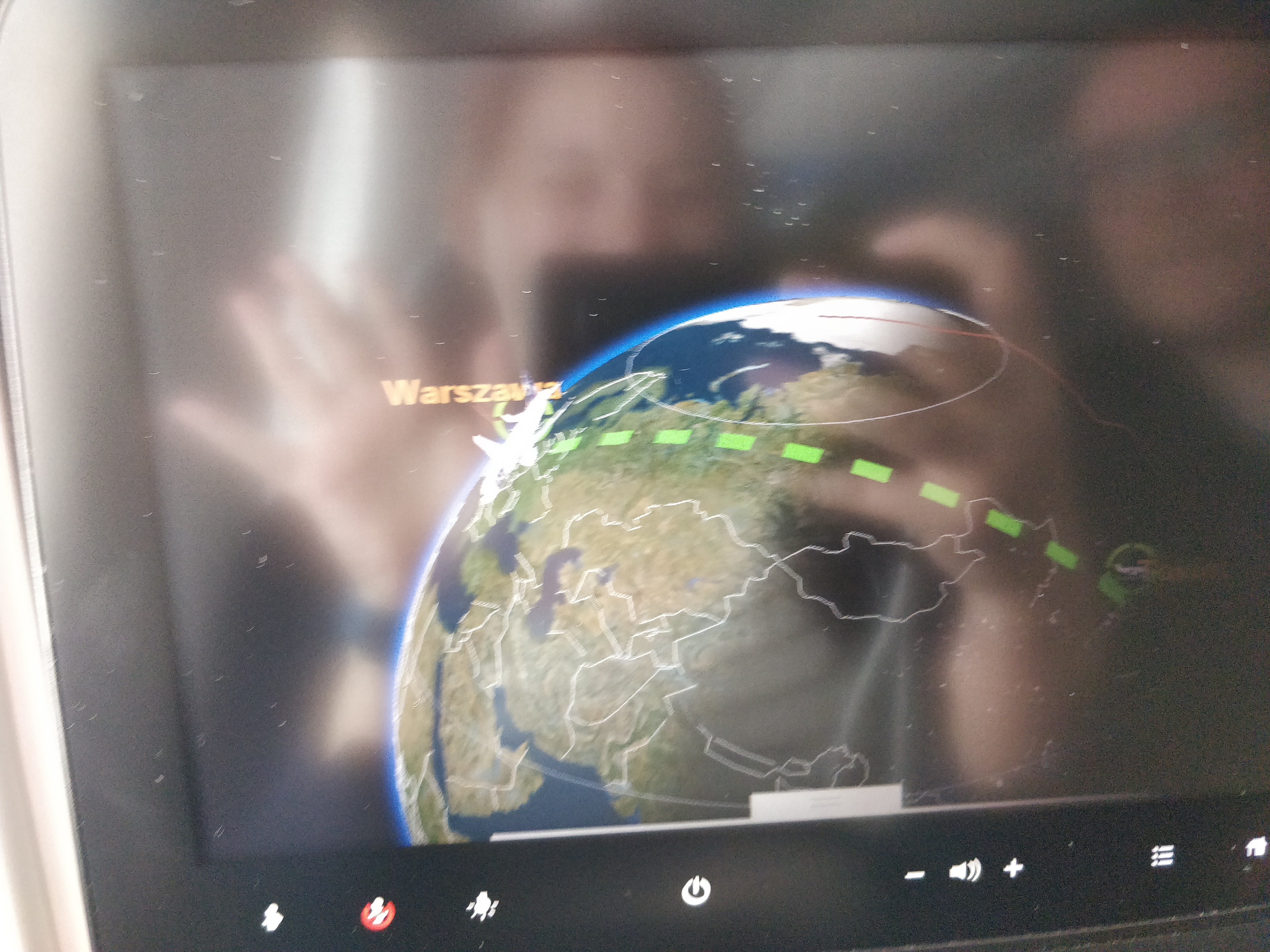 Interessanterweise wurde unser langer Flug bei Flugstart mit einer Reisezeit von neun einhalb Stunden angegeben – die Ankunftszeit war jedoch dieselbe, da wir mit etwas Verspätung losflogen.